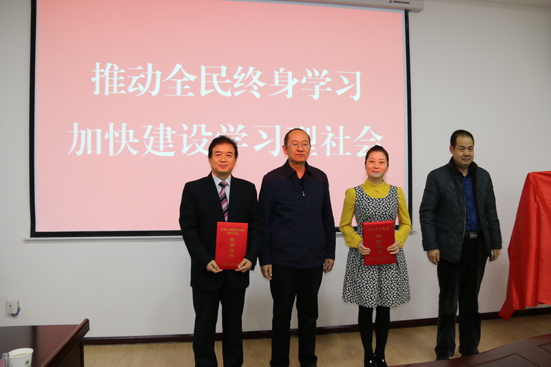 啟動(dòng)儀式對(duì)獲得2017年我市榮獲全國(guó)、全省“百姓學(xué)習(xí)之星”“終身學(xué)習(xí)品牌項(xiàng)目”“優(yōu)秀成人繼續(xù)教育院校(培訓(xùn)機(jī)構(gòu))”等獲獎(jiǎng)個(gè)人和單位進(jìn)行了表彰。市教育局局長(zhǎng)李忠民、武威職業(yè)學(xué)院副院長(zhǎng)翟存祥對(duì)獲獎(jiǎng)單位和個(gè)人進(jìn)行了頒獎(jiǎng)。市教育局職成教科負(fù)責(zé)人李學(xué)德宣讀成立“武威市社區(qū)教育指導(dǎo)服務(wù)中心”的文件,由市教育局局長(zhǎng)李忠民、武威職業(yè)學(xué)院副院長(zhǎng)翟存祥為“武威市社區(qū)教育指導(dǎo)服務(wù)中心”揭牌。張應(yīng)偉對(duì)《武威市教育局等九部門(mén)<關(guān)于進(jìn)一步推進(jìn)社區(qū)教育發(fā)展意見(jiàn)的實(shí)施方案》文件精神進(jìn)行了傳達(dá)。