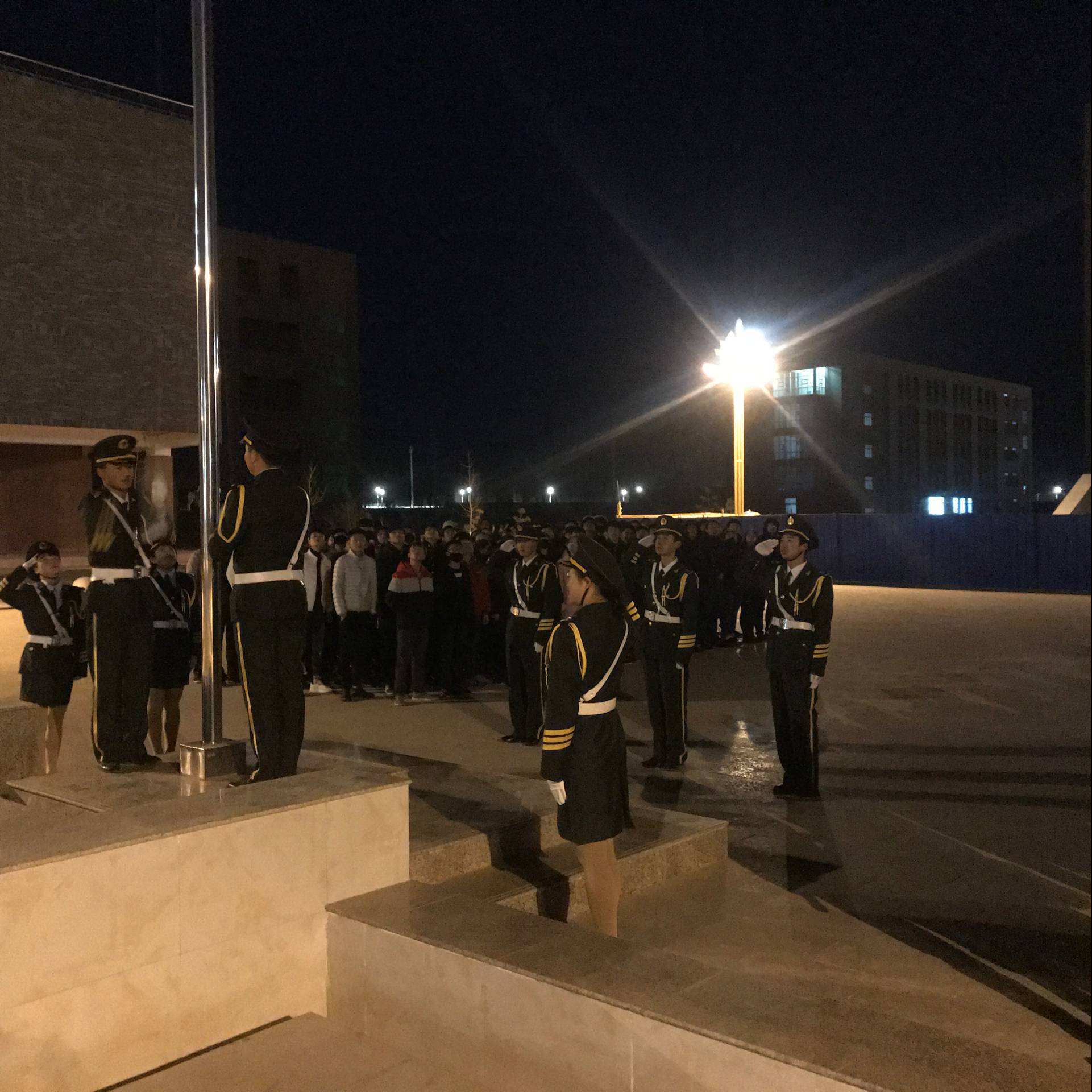 7點(diǎn)20分,護(hù)旗手邁著整齊有力的步伐,護(hù)衛(wèi)著鮮艷的五星紅旗走向了升旗臺(tái)。伴隨著莊嚴(yán)的國歌聲,五星紅旗冉冉升起,迎風(fēng)飄揚(yáng)。全體師生莊嚴(yán)肅立,向國旗行注目禮。