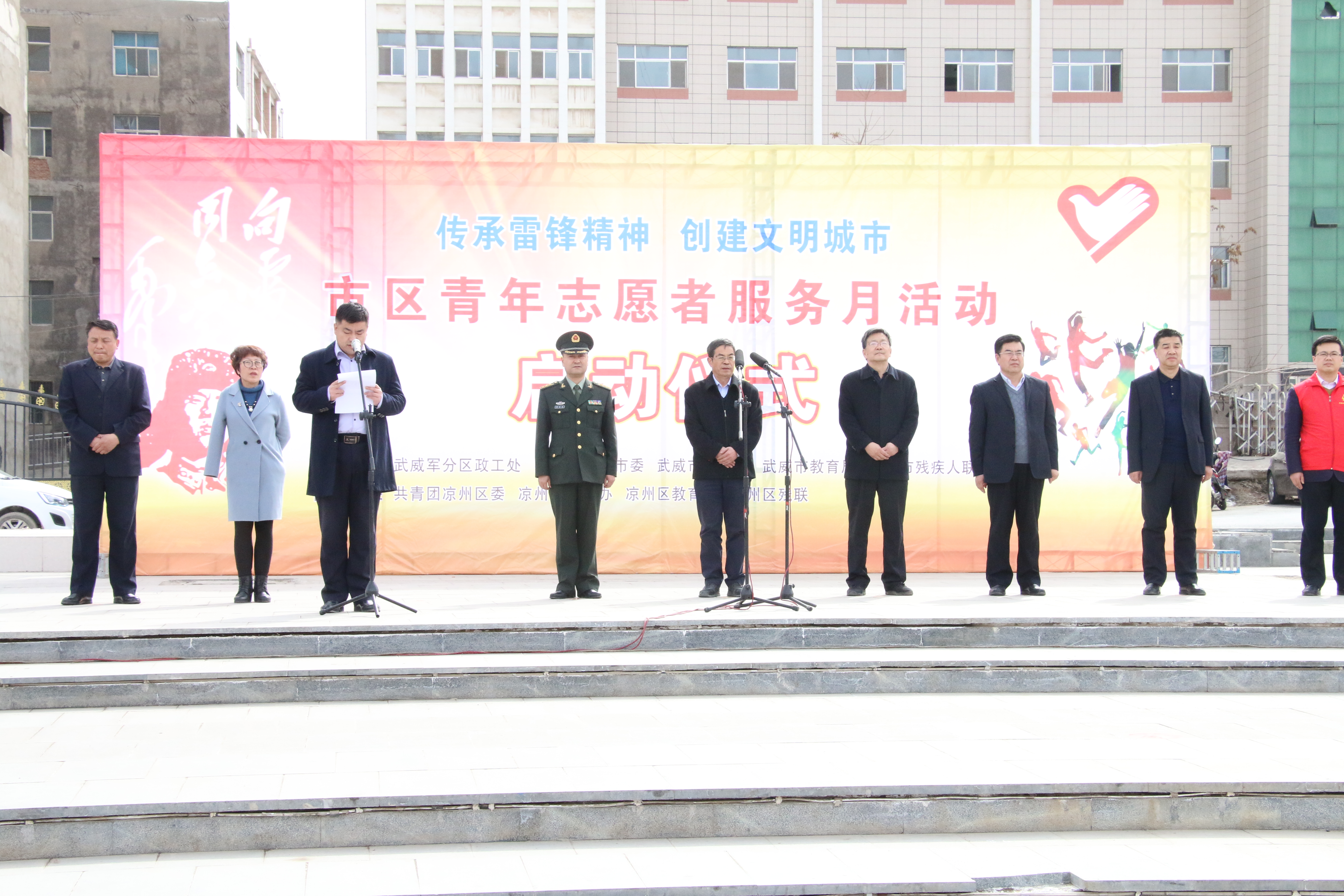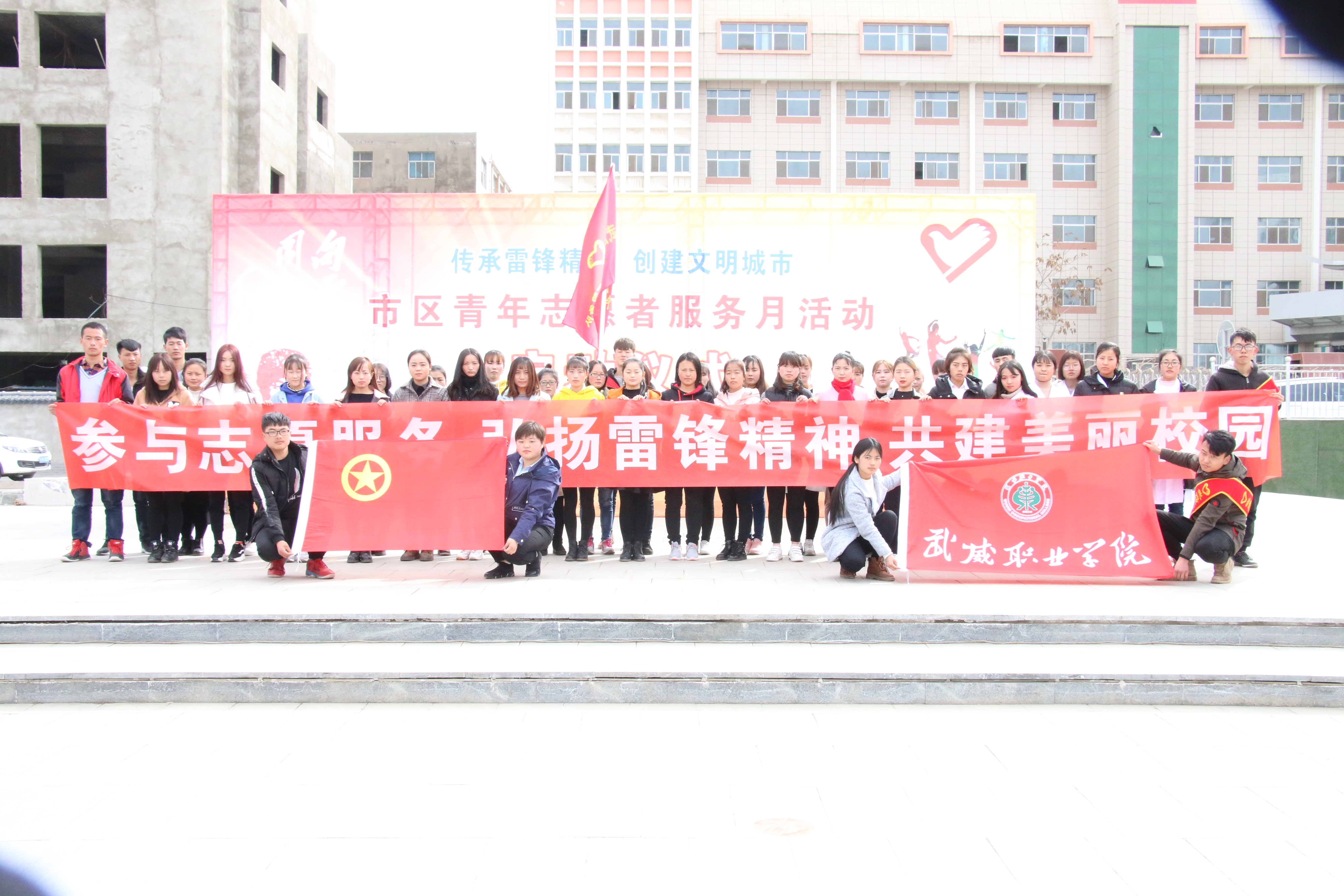 今年是毛澤東等老一輩革命家為雷鋒同志題詞55周年,3月5日是中國青年志愿者服務(wù)日。 3月5日下午,學(xué)院50名志愿者在武威市文化廣場(chǎng)參加了全市志愿者服務(wù)月活動(dòng)啟動(dòng)儀式,活動(dòng)現(xiàn)場(chǎng)氣氛熱烈,市領(lǐng)導(dǎo)為我院志愿服務(wù)隊(duì)進(jìn)行了授旗,青年志愿者代表宣讀了倡議書,全體志愿者重溫了青年志愿者誓詞。