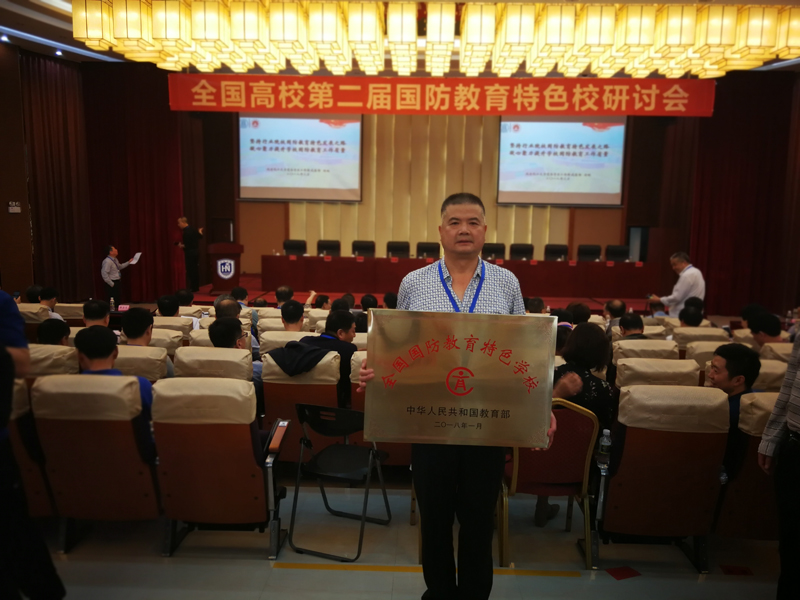 在會(huì)上,中國(guó)高等教育學(xué)會(huì)國(guó)防教育工作委員會(huì)組委會(huì)向?qū)W院頒發(fā)了“全國(guó)國(guó)防教育特色學(xué)校”牌。