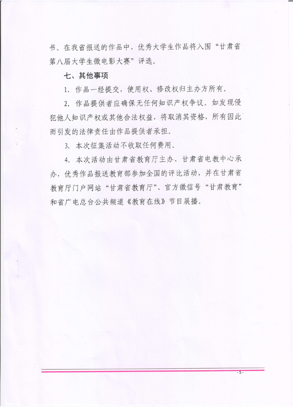 ???? 現(xiàn)將甘肅省教育廳《甘肅省教育廳關(guān)于做好征集新時(shí)代教師風(fēng)采公益廣告有關(guān)工作的通知》(甘教師函〔2018〕24號(hào))轉(zhuǎn)發(fā)你們,請(qǐng)各部門、單位根據(jù)通知要求認(rèn)真組織,積極參與。將參賽作品于5月15日前報(bào)宣傳統(tǒng)戰(zhàn)部辦公室,宣傳統(tǒng)戰(zhàn)部對(duì)報(bào)送作品匯總后統(tǒng)一報(bào)送省教育廳電教中心。