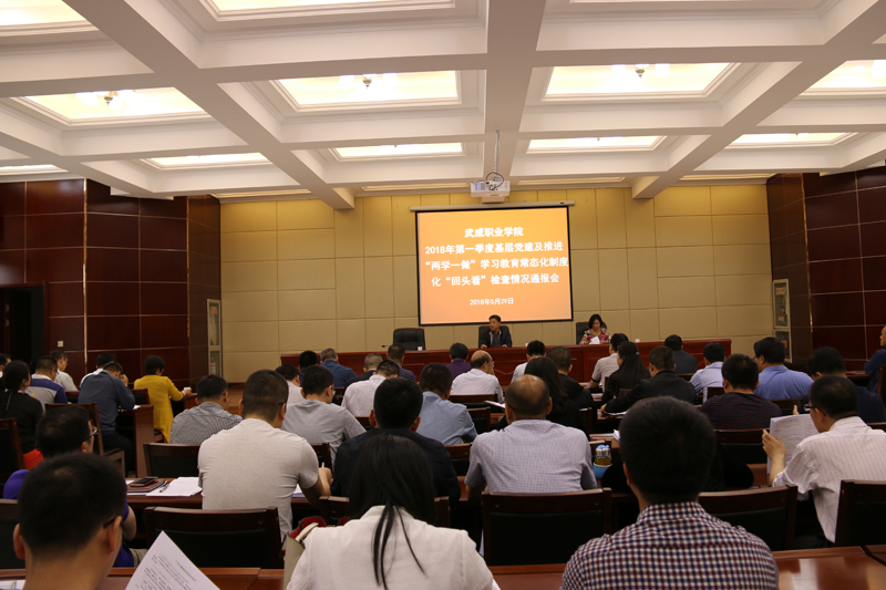5月29日下午,學(xué)院在行樹樓北側(cè)會議室召開2018年第一季度基層黨建及推進“兩學(xué)一做”學(xué)習(xí)教育常態(tài)化制度化“回頭看”檢查情況通報會。各黨總支、直屬黨支部書記和各系下設(shè)黨支部書記、支委委員共90多人參加會議。會議由黨委副書記趙明主持,