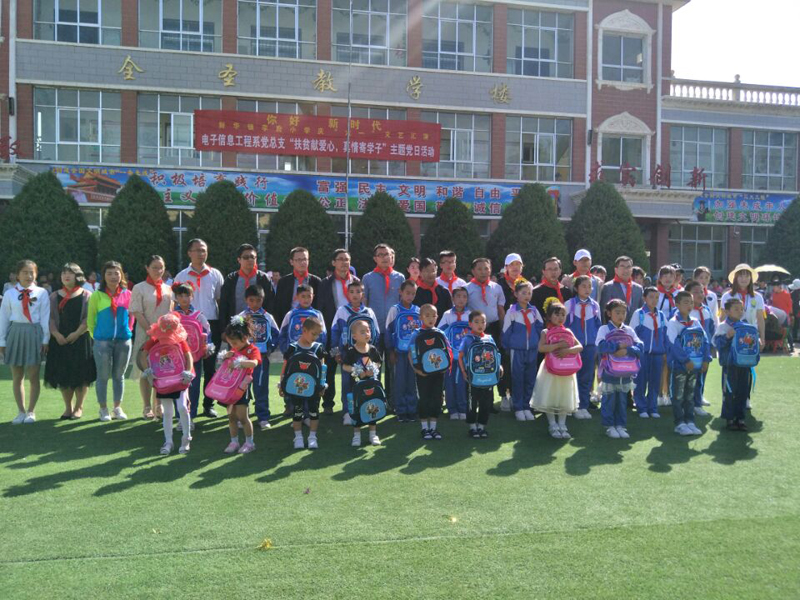 5月31日8點,電子信息工程系黨總支全體黨員和學(xué)生入黨積極分子赴涼州區(qū)新華鎮(zhèn)李府小學(xué)開展“扶貧獻愛心,真情寄學(xué)子”主題黨日活動,為精準扶貧建檔立卡學(xué)生送去了學(xué)習(xí)、生活用品,與孩子們共同度過了一個快樂、祥和的六一國際兒童節(jié)。
