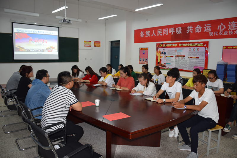 為認(rèn)真貫徹落實(shí)《學(xué)院第15個民族團(tuán)結(jié)進(jìn)步宣傳月活動實(shí)施方案》,6月12日,現(xiàn)代農(nóng)業(yè)技術(shù)系在行樹樓教學(xué)區(qū)309會議室開展民族團(tuán)結(jié)月系列活動。系黨總支書記晏素珍、龔建軍、蔡飛老師及全系少數(shù)民族學(xué)生參加會議,會議由系輔導(dǎo)員蔡海老師主持。