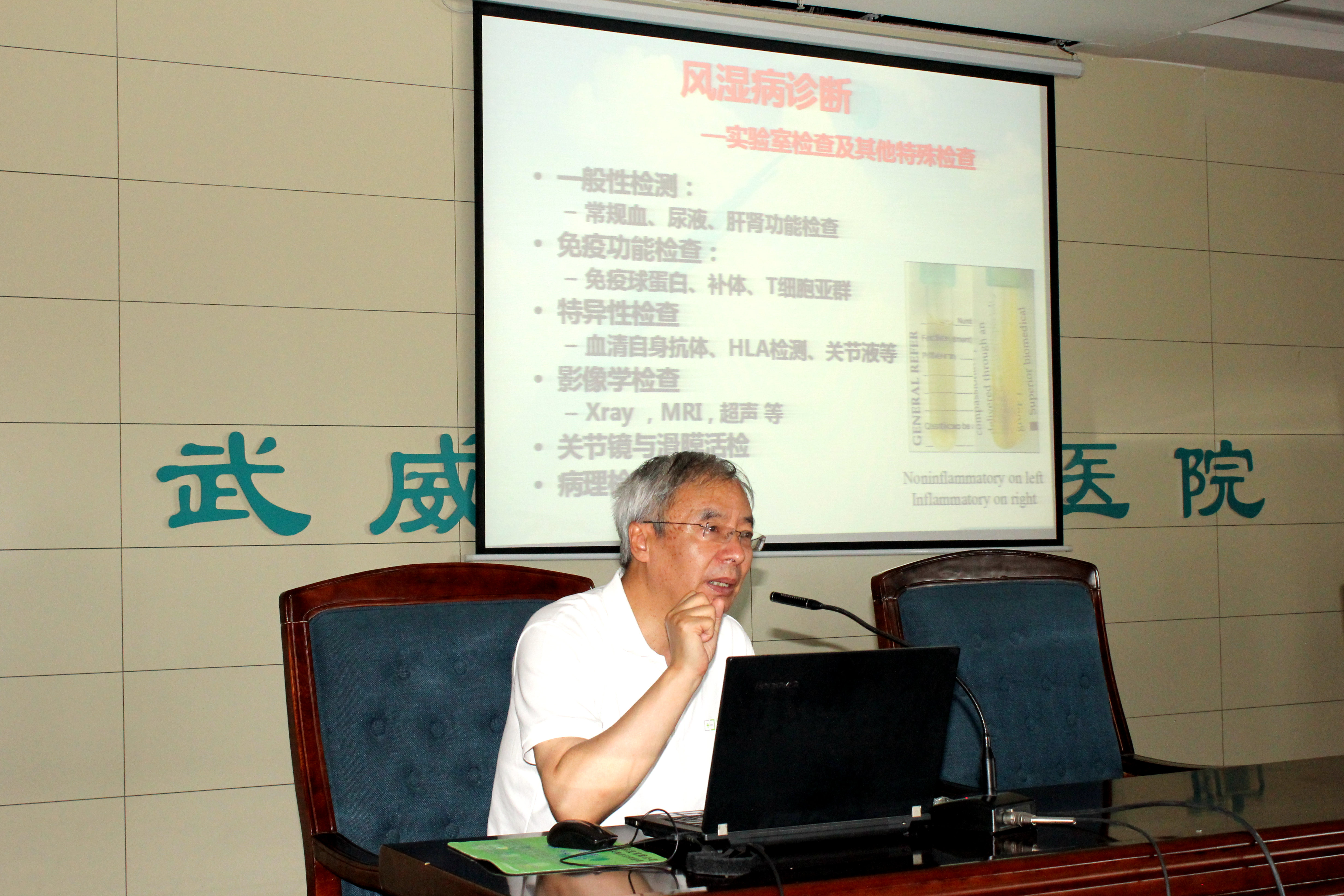 為提高醫(yī)務(wù)人員診治風(fēng)濕病的技術(shù)水平,學(xué)院直屬附屬醫(yī)院于6月29日下午,在內(nèi)科七樓會議室舉辦風(fēng)濕病診治學(xué)術(shù)報告會。醫(yī)院邀請?zhí)m大二院著名風(fēng)濕病專家王軼作“風(fēng)濕免疫實驗室檢查”為題的學(xué)術(shù)報告,副院長張仁德主持會議,醫(yī)院各科室百余名醫(yī)療骨干參加學(xué)術(shù)會議聆聽報告。