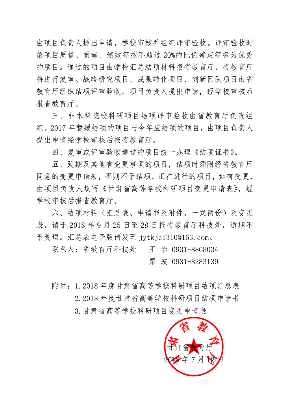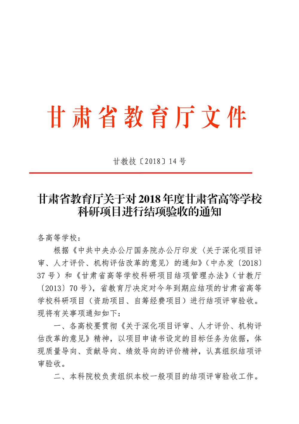 甘肅省教育廳關(guān)于對2018年度甘肅省高等學(xué)校科研項目進行結(jié)項的通知(附件).doc