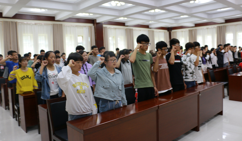最后,2018級(jí)光伏材料班李飛虎同學(xué)作為新生代表發(fā)言。他滿懷憧憬,表達(dá)了同學(xué)們對(duì)大學(xué)生活的期待和勤奮求知的決心,并帶領(lǐng)全體新生進(jìn)行了入學(xué)宣誓。