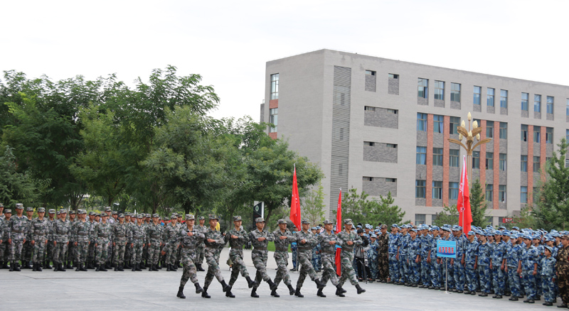 大會現(xiàn)場,田迎春向承訓單位授予軍訓團旗。大會在雄壯的《中國人民解放軍軍歌》聲中拉開了軍訓序幕。