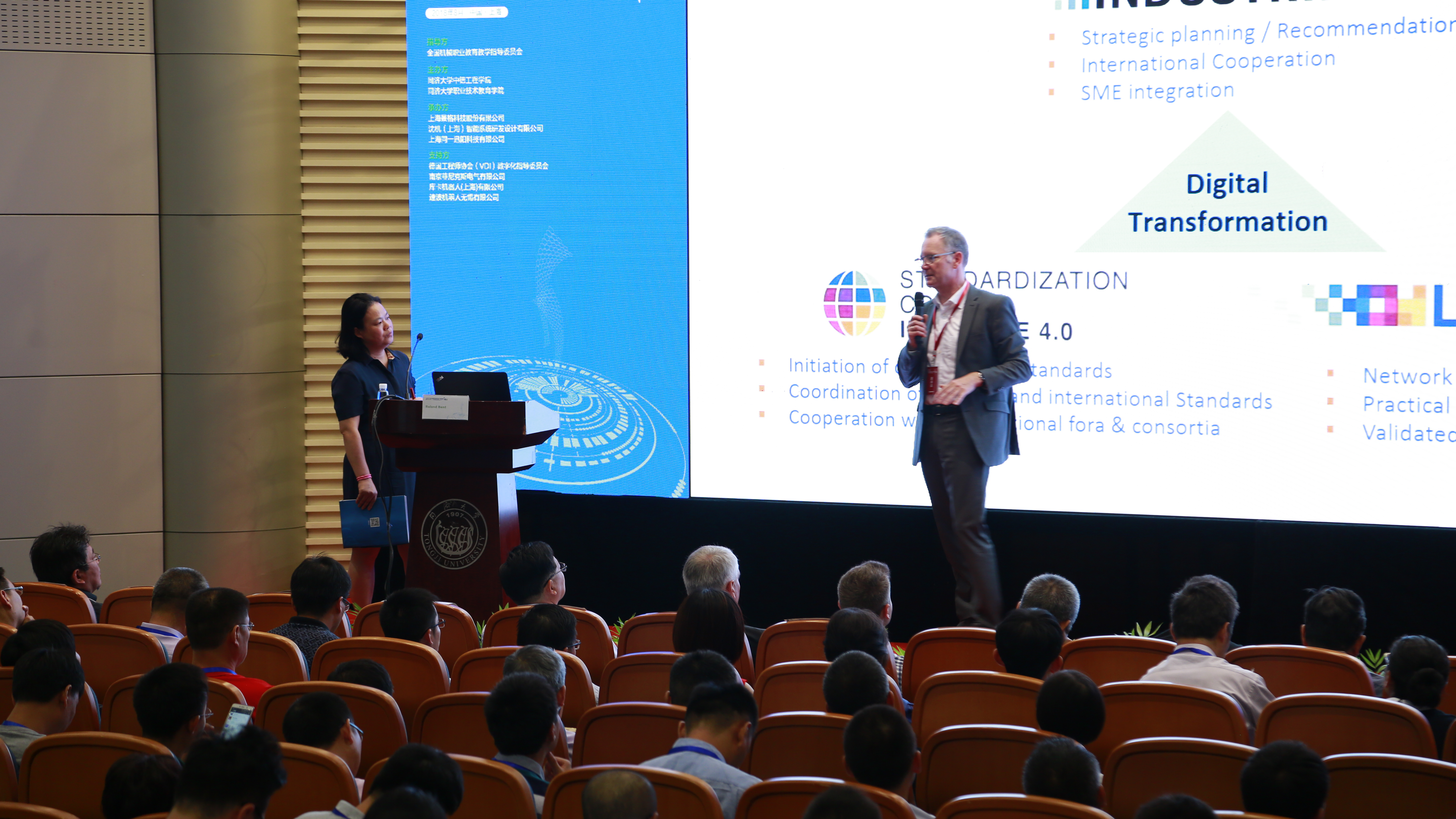 ??? 德國工業(yè)4.0標準制定委員會主席Roland Bent,對德國工業(yè)4.0標準的新發(fā)展進行分享,為與會者提供了極具思想開放和思維拓展的窗口,以及智能制造產(chǎn)教融合的理論實踐依據(jù)。德國工程師協(xié)會教授Christian-Andreas Schumann論述了在全球化和數(shù)字化背景下教育領(lǐng)域網(wǎng)絡化協(xié)作的重要性,其研究領(lǐng)域的專業(yè)度和內(nèi)容的豐富性令與會者大呼痛快。