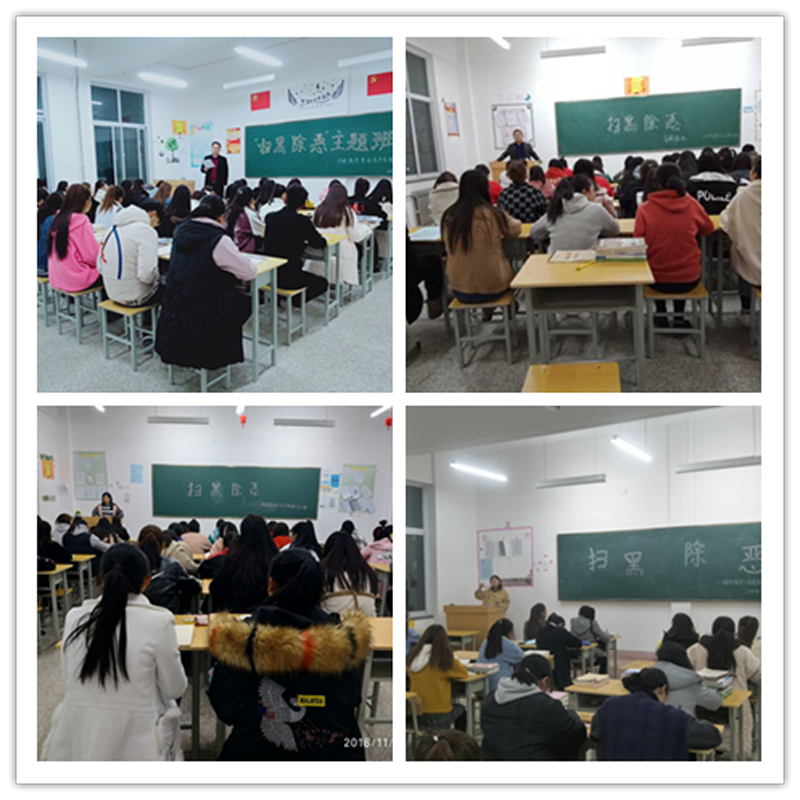 各班班主任精心準備,帶領(lǐng)學生學習“掃黑除惡”宣傳材料。重點針對“校園貸”、“老鄉(xiāng)會”、“黃賭毒”、校園欺凌和網(wǎng)絡(luò)威脅等違法犯罪行為進行深刻剖析,并提出了行之有效的防范措施,確保師生人身和財產(chǎn)安全。