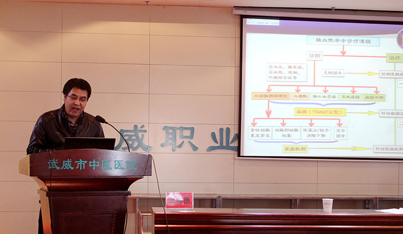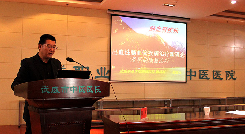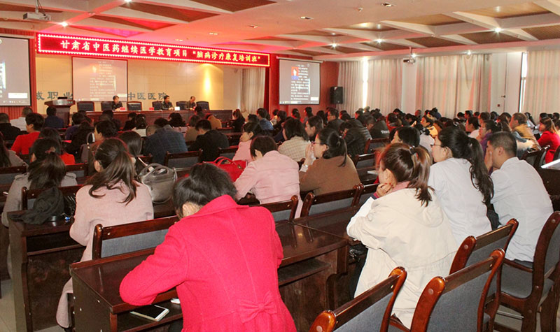 為提高醫(yī)務(wù)人員對于腦病(腦卒中)的診療和康復(fù)訓(xùn)練水平,推進(jìn)醫(yī)院腦卒中中心的籌備建設(shè),學(xué)院附屬醫(yī)院于11月11日上午,在內(nèi)科七樓會(huì)議室舉辦甘肅省中醫(yī)藥繼續(xù)醫(yī)學(xué)教育項(xiàng)目:腦病診療康復(fù)培訓(xùn)班。醫(yī)院副院長宗武山主持培訓(xùn)班開班儀式,副院長毛照海致辭歡迎蘭大二院2位神經(jīng)內(nèi)科專家講學(xué)指導(dǎo)工作。醫(yī)院各科室二百余名醫(yī)療骨干參加腦病診療康復(fù)培訓(xùn)班,聆聽學(xué)術(shù)報(bào)告。