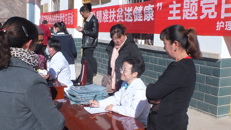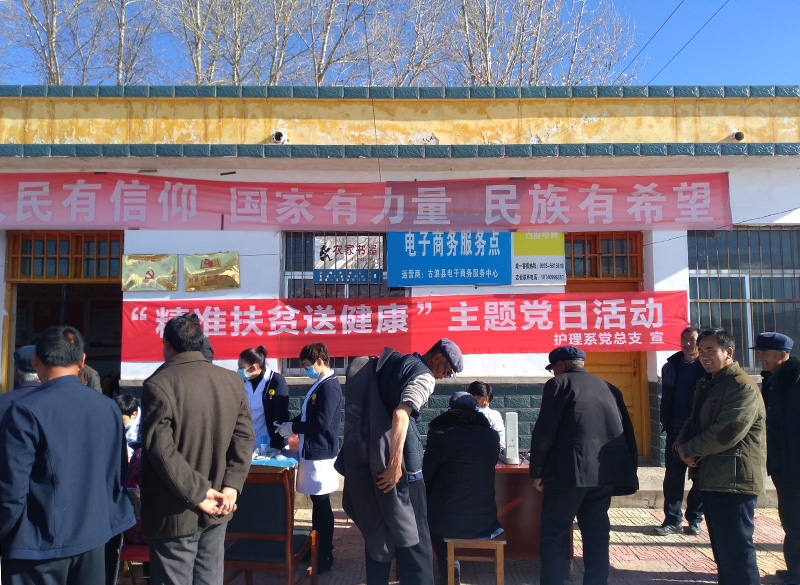 為深入學(xué)習(xí)宣傳貫徹黨的十九大精神及健康扶貧等惠民政策,減少出現(xiàn)“因病致貧”、“因病返貧”,11月23日,護(hù)理系黨總支組織黨員教師到我院精準(zhǔn)扶貧點古浪縣黑松驛鎮(zhèn)尚家臺村開展“健康扶貧,送醫(yī)送藥”主題黨日活動。
