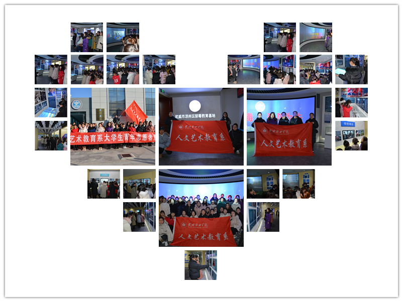2018年12月7日下午,武威職業(yè)學院人文藝術(shù)教育系組織51名由老師、入黨積極分子、優(yōu)秀團學干部和入團積極分子組成的青年志愿者服務(wù)隊赴武威市涼州區(qū)禁毒教育基地參觀。展館運用現(xiàn)代展示手段和傳媒技術(shù),寓嚴肅的禁毒教育主題于生動的展示體驗之中,讓同學們充分認識到毒品對個人、家庭、社會乃至國家、民族的危害。