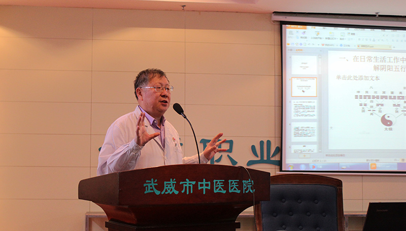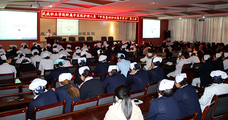 為了提高全院護理人員的中醫(yī)基礎(chǔ)知識水平, 12月12日下午,學院附屬中醫(yī)院護理部在內(nèi)科七樓會議室舉辦護理人員中醫(yī)基礎(chǔ)知識學習會。會議邀請康復(fù)中心主任,中醫(yī)針灸主任醫(yī)師張國忠為全院150多名護理工作者作題為《在日常生活中如何應(yīng)用理解陰陽五行》的中醫(yī)知識講座。