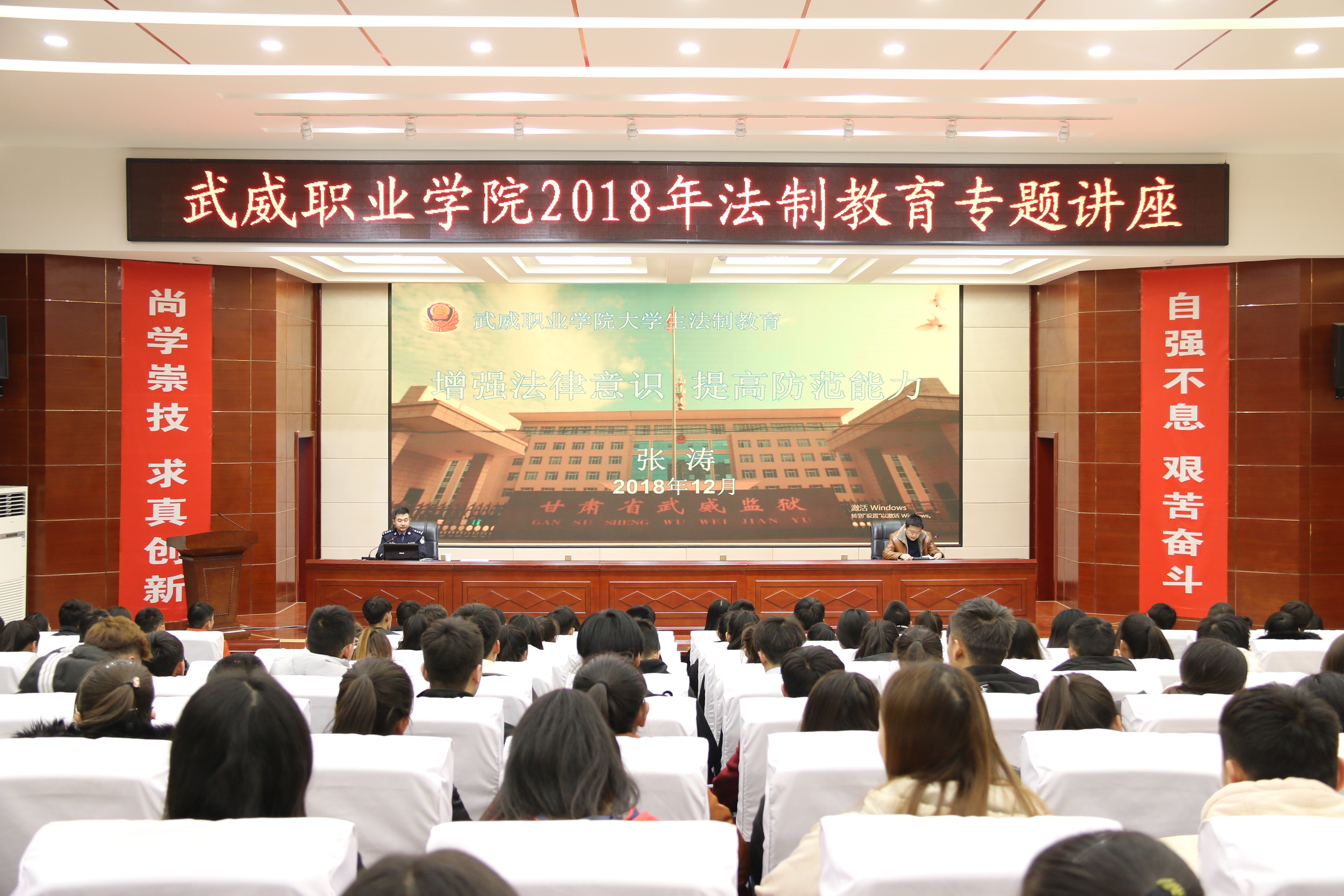 講座邀請了甘肅省武威監(jiān)獄第七監(jiān)區(qū)副監(jiān)區(qū)長張濤警官主講。講座采取以案說法、以案學(xué)法、以法警示的方式,圍繞校園欺凌、網(wǎng)絡(luò)詐騙、校園貸等熱點問題,分析了目前青少年違法犯罪的現(xiàn)狀,闡釋了法律對于維護(hù)社會秩序、影響人們生活的重要性,深入淺出地講解了大學(xué)生應(yīng)該如何遵紀(jì)守法、如何預(yù)防犯罪、如何防止不法侵害、打擊犯罪及自我防范的一些基本方法,教導(dǎo)同學(xué)們要增強法律意識,提高防范能力,做一名知法、懂法、守法、用法的合格公民。