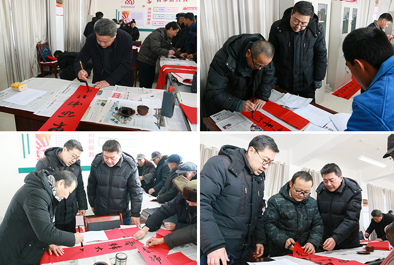 1月9日,學(xué)院扶貧幫扶點古浪縣黃花灘8號移民點熱鬧非凡,人文藝術(shù)教育系黨總支開展了一場喜慶活潑的“喜迎佳節(jié)、送春聯(lián)文化進萬家”主題黨日活動,村委會內(nèi)外圍滿了欣賞書畫的干部群眾。