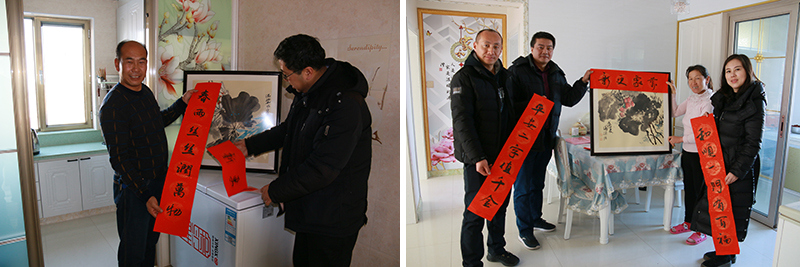 在寫完300余幅春聯(lián)后,幫扶干部將春聯(lián)、繪畫作品送到幫扶對象家中,將新春的祝福和慰問一一送達,與他們交心談心拉家常,傳達中央的各項會議精神及惠民政策,確保貧困戶過一個溫暖祥和的春節(jié)。