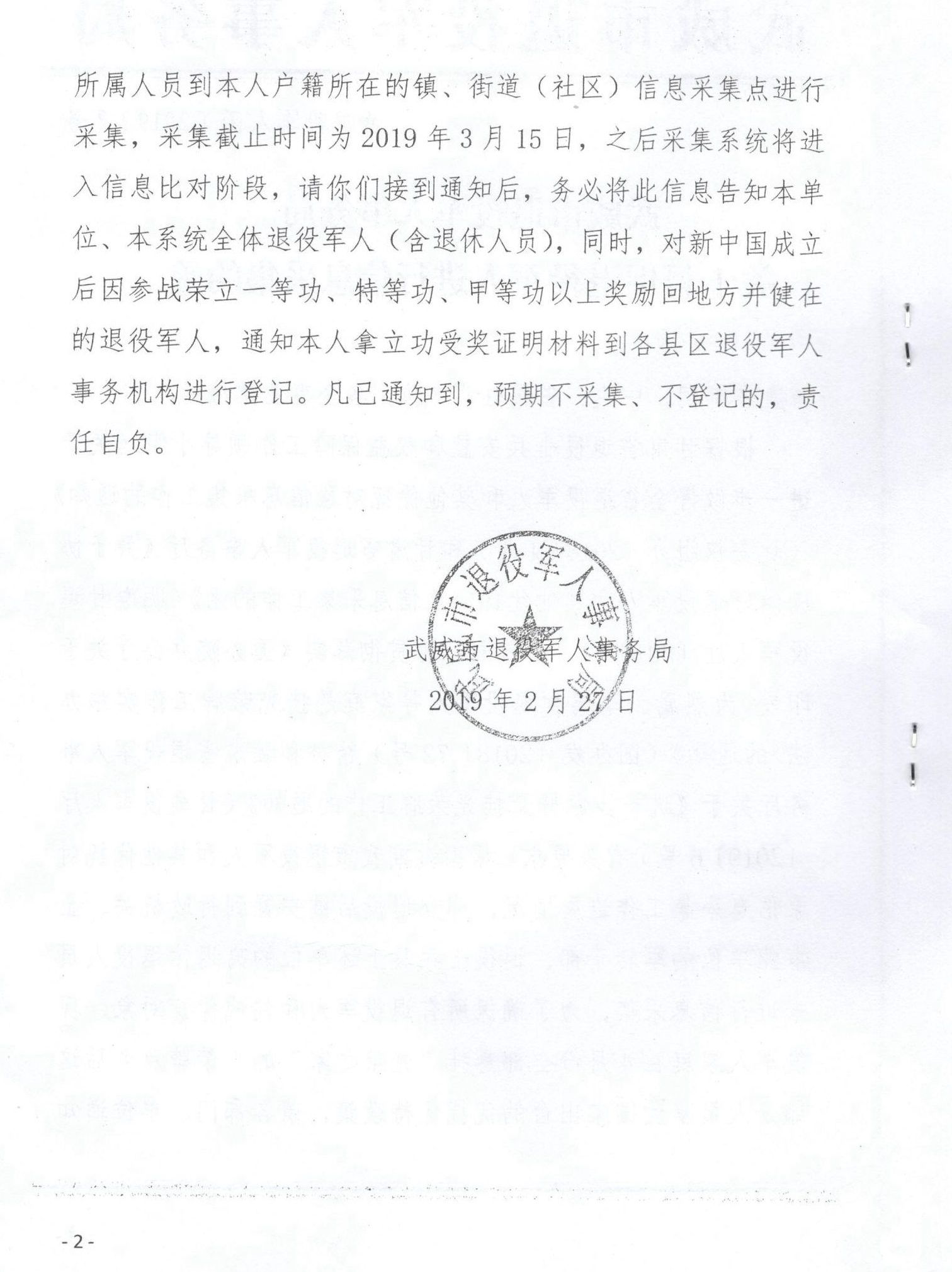 <轉(zhuǎn)發(fā)>武威市退役軍人事務局關于督促退役軍人進行信息采集的函