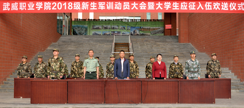 9月5日上午,武威職業(yè)學(xué)院2018級新生軍訓(xùn)動(dòng)員大會(huì)暨大學(xué)生應(yīng)征入伍歡送儀式在大學(xué)生活動(dòng)中心廣場舉行。學(xué)院副院長王永緒、田迎春,涼州區(qū)武裝部副部長韓小偉,工程防化第76旅副營長夏科銀出席儀式。承訓(xùn)單位工程防化第76旅45名戰(zhàn)士,學(xué)院學(xué)工處處長,各系黨總支書記、輔導(dǎo)員、班主任,2018級全體學(xué)生參加了大會(huì)。儀式由田迎春主持。