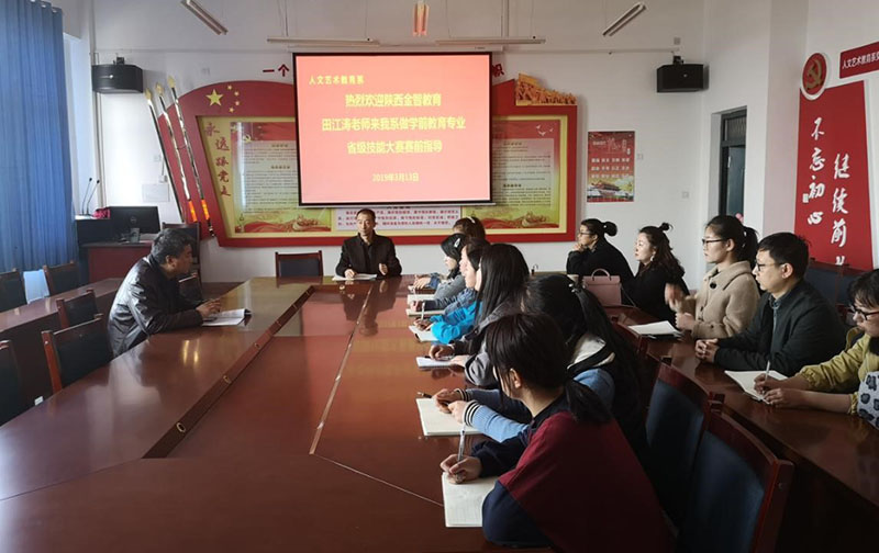 2019年3月13日下午,人文藝術教育系邀請陜西金智教育集團講師、山西省“國培計劃”學前教育專業(yè)領域客座講師田江濤老師到我系進行了學前教育專業(yè)省級技能大賽專題培訓講座,并對2019年甘肅省職業(yè)院校學前教育專業(yè)技能比賽的流程進行了指導。系副主任李欣、各專業(yè)教師及參賽學生參加。