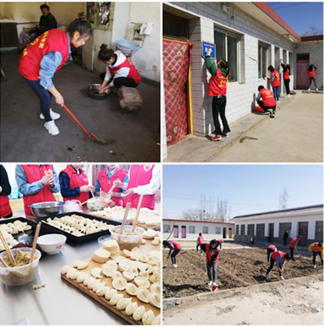 31日深入敬老院開展送溫暖志愿服務(wù)。為留守老年人、五保戶以及空巢老人、孤寡老人送去關(guān)愛,志愿者們首先將帶去的毛巾、香皂、牙刷、牙膏等生活用品送到老人手里。隨后志愿者們開展義務(wù)勞動,幫助老人們打掃宿舍衛(wèi)生,清掃院內(nèi)垃圾,并幫老人耕作菜園、松土、撿深埋園地的各類垃圾塑料。之后將事先準(zhǔn)備好的餃子皮、餃子餡拿出來給他們包餃子吃,期間志愿者和老人們親切交談,詢問他們的生活情況,了解他們的精神狀況,給予他們最美好的祝福。志愿者以微薄之力幫助他們解決了一些實際困難,更從精神上給予關(guān)愛,讓他們內(nèi)心感受溫暖,安享晚年之樂。