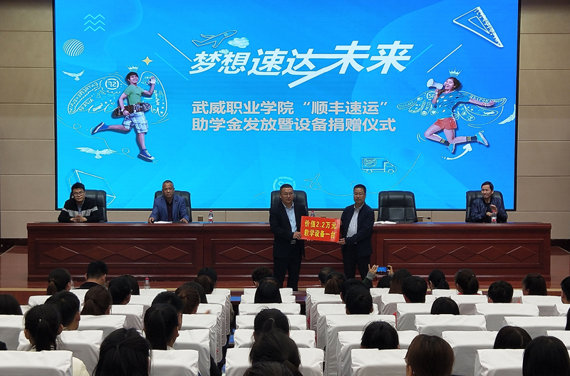 儀式現(xiàn)場進行了“順豐速運”集團獎助學金發(fā)放、設備捐贈活動。“順豐速運”集團為學院捐贈價值2.2萬元的教學設備,發(fā)放助學金2.1萬元。