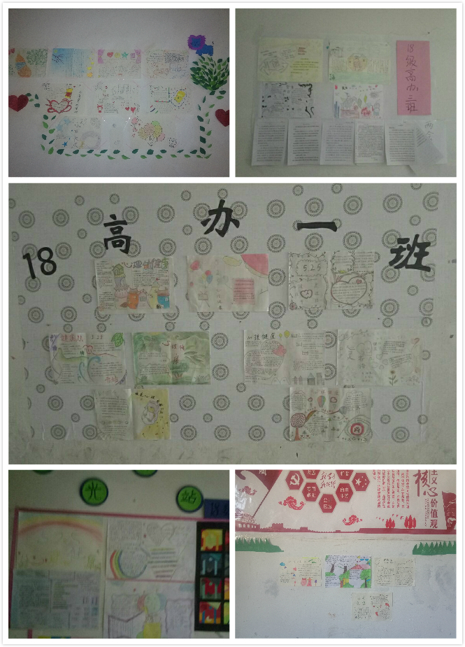 ?各班分別召開了以心理健康為主題的班會;召集了一次“心靈健康伴我行,花開香溢滿校園”簽名活動;舉辦了“幸福是一種能力”心理知識講座。?邀請國家二級心理咨詢師趙軍生老師舉辦了一次心理健康團(tuán)體輔導(dǎo)活動。開展了“心理健康”手抄報設(shè)計比賽。