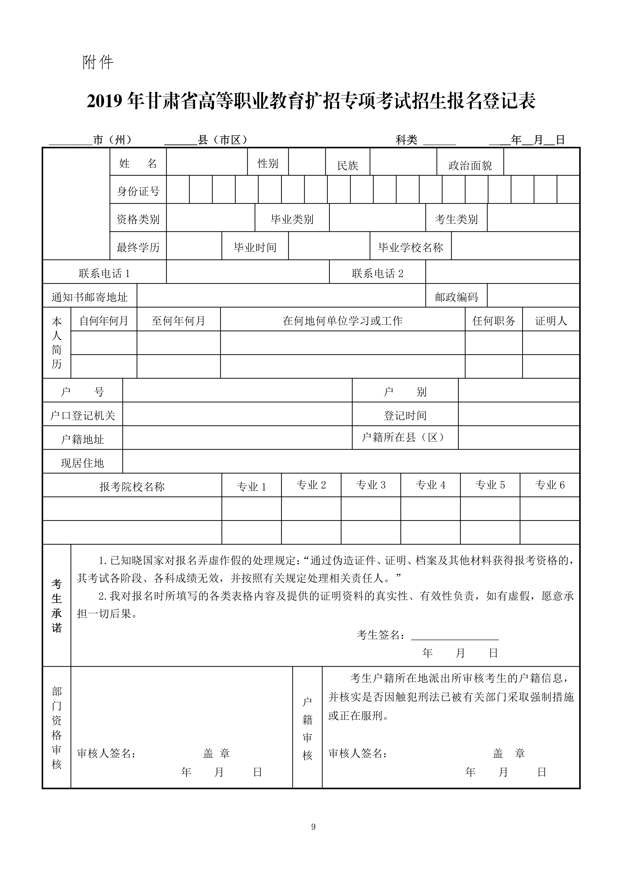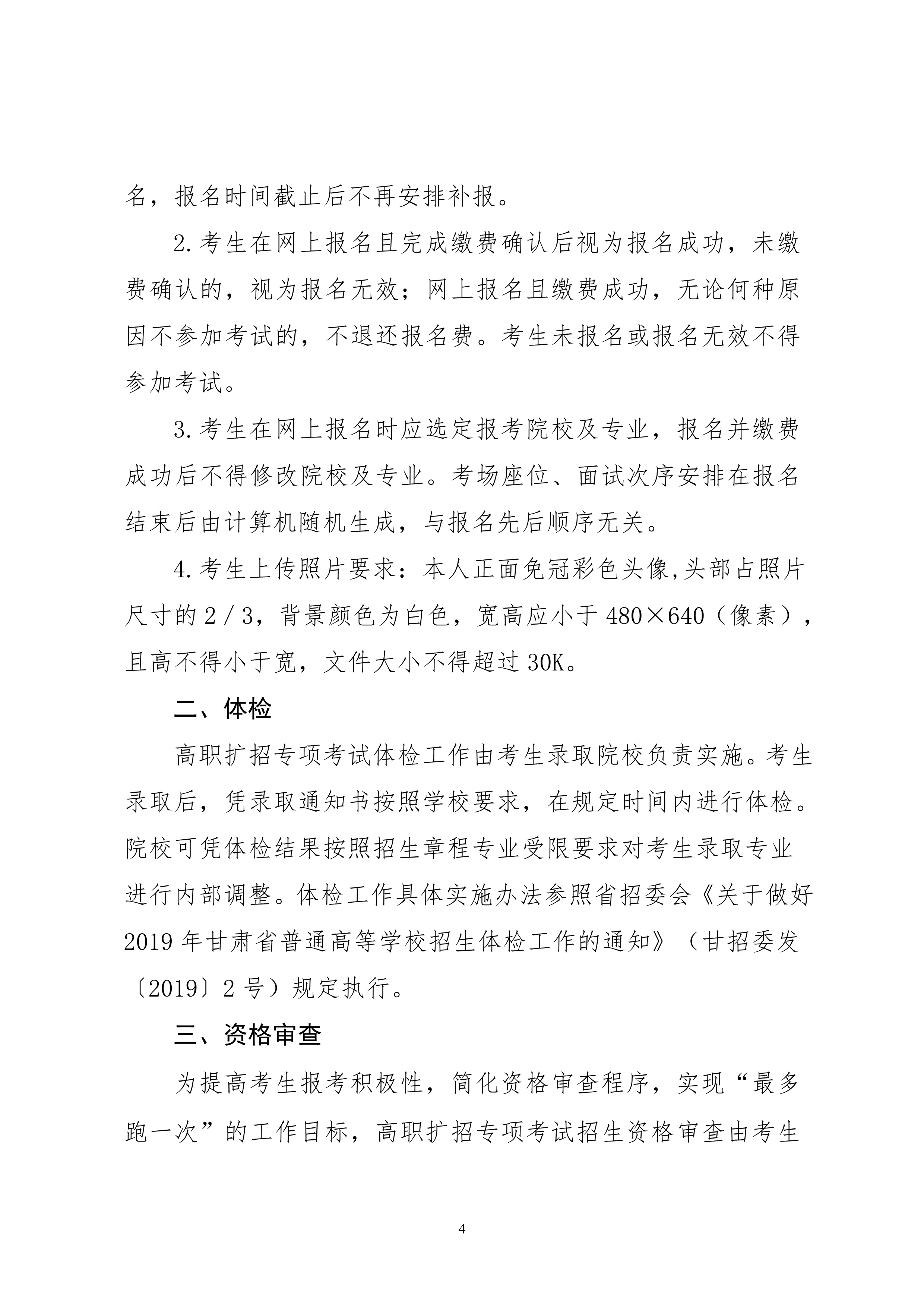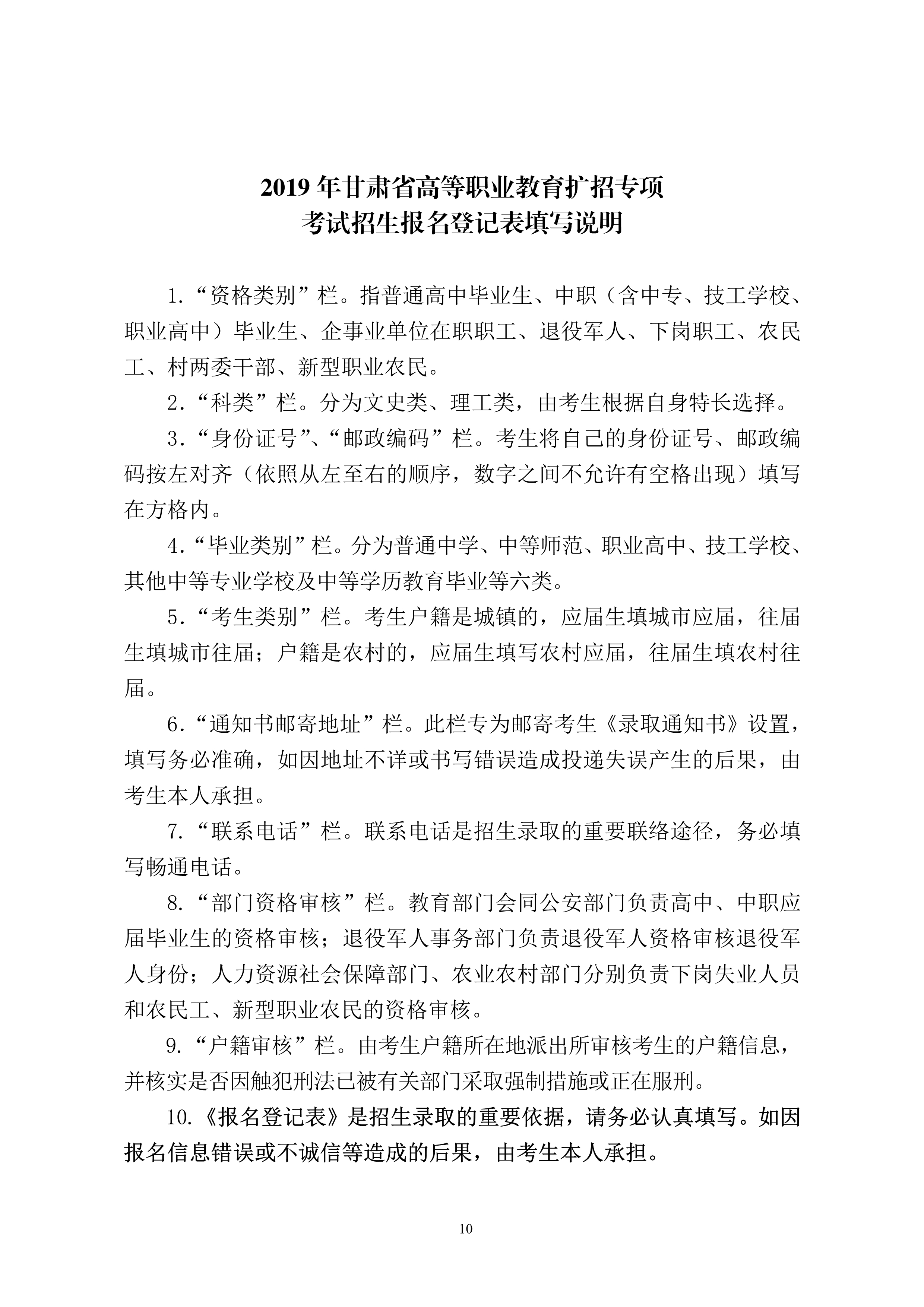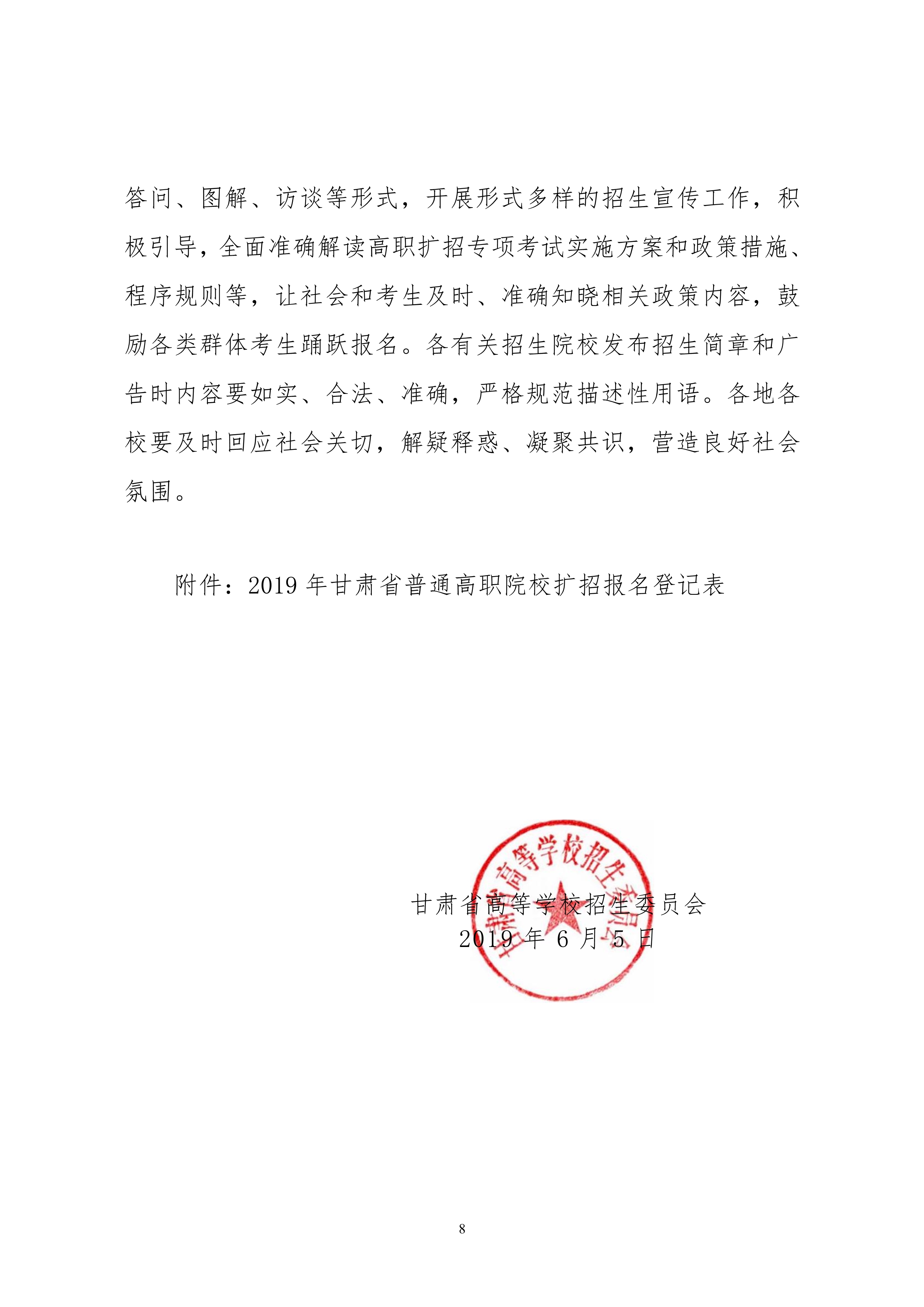 19年關(guān)于做好2019年甘肅省高等職業(yè)教育擴(kuò)招專項考試招生工作的通知