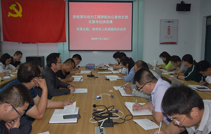 6月25日下午,新能源與動(dòng)力工程學(xué)院辦公室黨支部書記任陶以《大學(xué)的定力與初心——做黨和人民滿意的好老師》為題講黨課,支部全體黨員聆聽(tīng)了此次黨課。