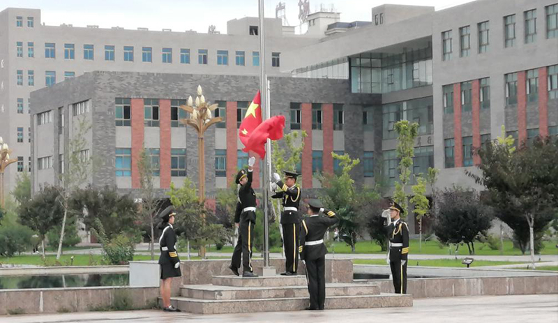 2019年8月26日,人文藝術(shù)教育系全體師生在學(xué)院圖書館東廣場舉行升國旗儀式。7點20分,伴隨著雄壯的國歌聲和護旗手鏗鏘有力的步伐,升旗儀式正式開始。