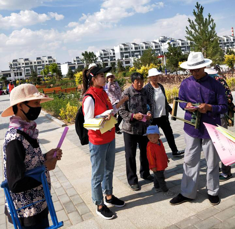 7月11日開始, 6名志愿者在指導(dǎo)老師的帶領(lǐng)下分別進(jìn)入倉(cāng)巷社區(qū)銀城花園、天馬湖公園、古浪縣綠洲移民點(diǎn)、永豐鎮(zhèn)、發(fā)放鎮(zhèn)、天馬社區(qū)、清源鎮(zhèn)幸福家園社區(qū)、金沙社區(qū)、福利路社區(qū)、古城鎮(zhèn)祁山村、武南鎮(zhèn)、清水鎮(zhèn)等地開展了宣講實(shí)踐活動(dòng)。通過擺放展板、實(shí)地講解、發(fā)放禁毒防艾宣傳材料、問卷調(diào)查、個(gè)案訪談、資料收集等方式,深入了解實(shí)踐地禁毒防艾最新形勢(shì)、相關(guān)工作開展情況、存在的實(shí)際問題。