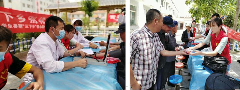 “醫(yī)路同行”愛心醫(yī)療服務團的隊員們充分發(fā)揚不怕苦、不怕累的拼搏精神,以飽滿的熱情對生活在那里的老人進行“流行性疾病、高血壓、高血糖”的知識宣傳,向廣大群眾介紹了夏季常見病的預防常識并發(fā)放防治疾病的宣傳手冊。同時為老人們免費測量血壓、血糖并填寫詳細的調查統(tǒng)計資料,免費發(fā)放傷風感冒、開胃消食、消炎止痛、防暑降溫等家庭必備常用藥品。隊員們的良好形象、熱情的服務、專業(yè)的素養(yǎng),受到了當地村民的高度評價和認可。