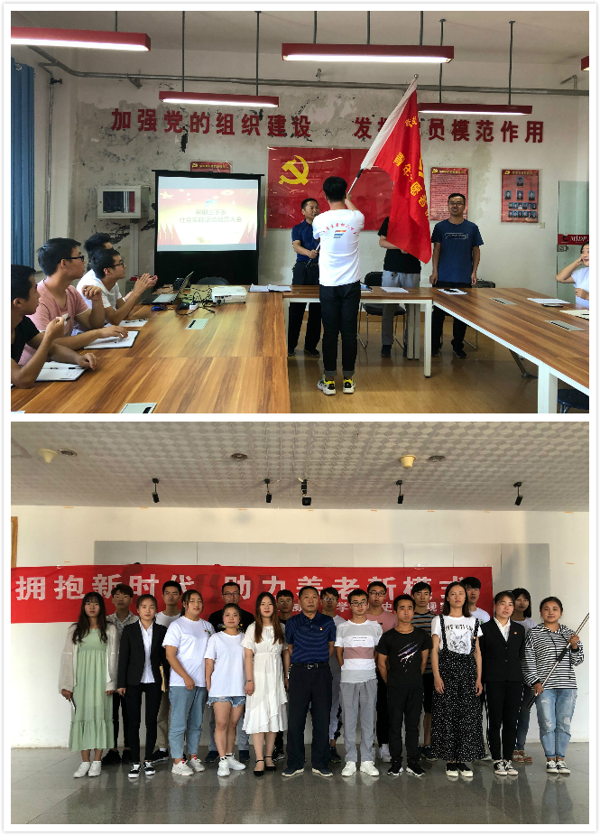 最后,系黨總支書記袁青年向?qū)嵺`團進行授旗,并提出具體要求:一是要統(tǒng)一思想,充分認識暑期社會實踐的意義;二是要明確任務(wù),切實理解暑期社會實踐的目的;三是要充分發(fā)揮專業(yè)特色和優(yōu)勢,增強社會實踐的實際效果;四是精心組織,確保安全圓滿地完成此次實踐活動。