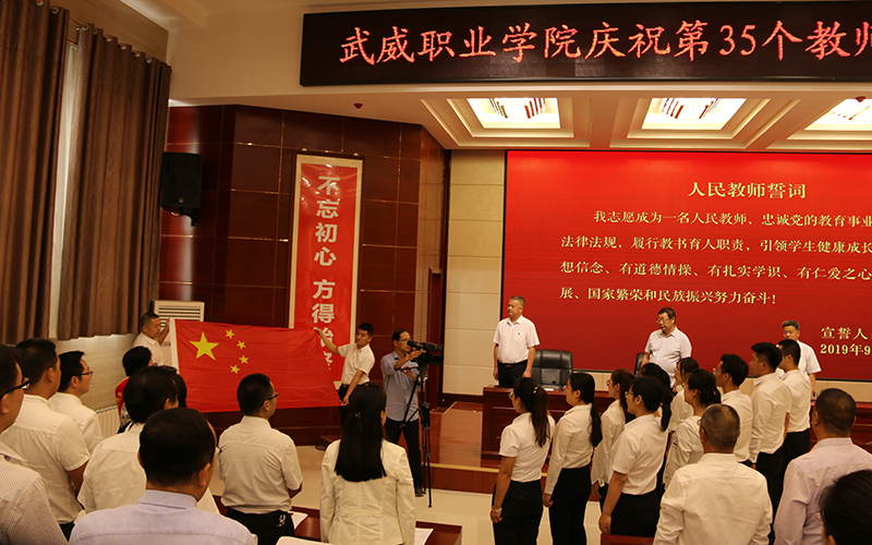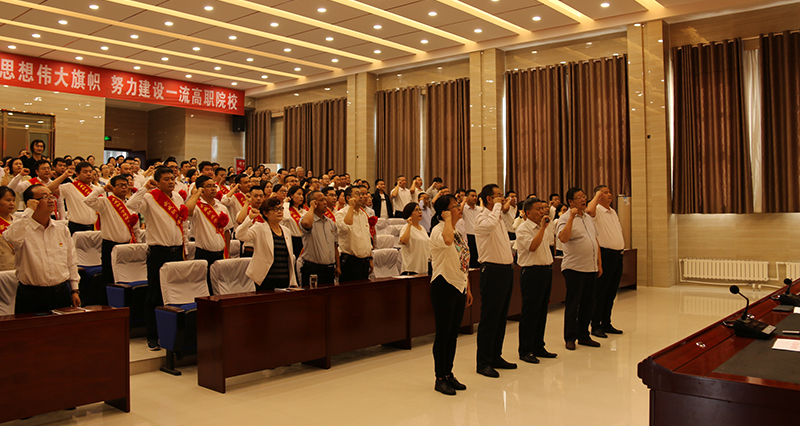 以“慶祝新中國七十華誕 弘揚(yáng)新時(shí)代尊師風(fēng)尚”為主題的教師節(jié)慶祝大會(huì)在莊嚴(yán)的《國歌》聲中拉開帷幕。學(xué)院黨委書記、院長趙明帶領(lǐng)全體教師重溫了教師誓詞,鏗鏘有力的誓詞、莊嚴(yán)的承諾,進(jìn)一步堅(jiān)定了廣大教師立德樹人的理想和信念。黨委副書記翟存祥領(lǐng)學(xué)了高校教師行為準(zhǔn)則,對高校教師行為提出了要求。