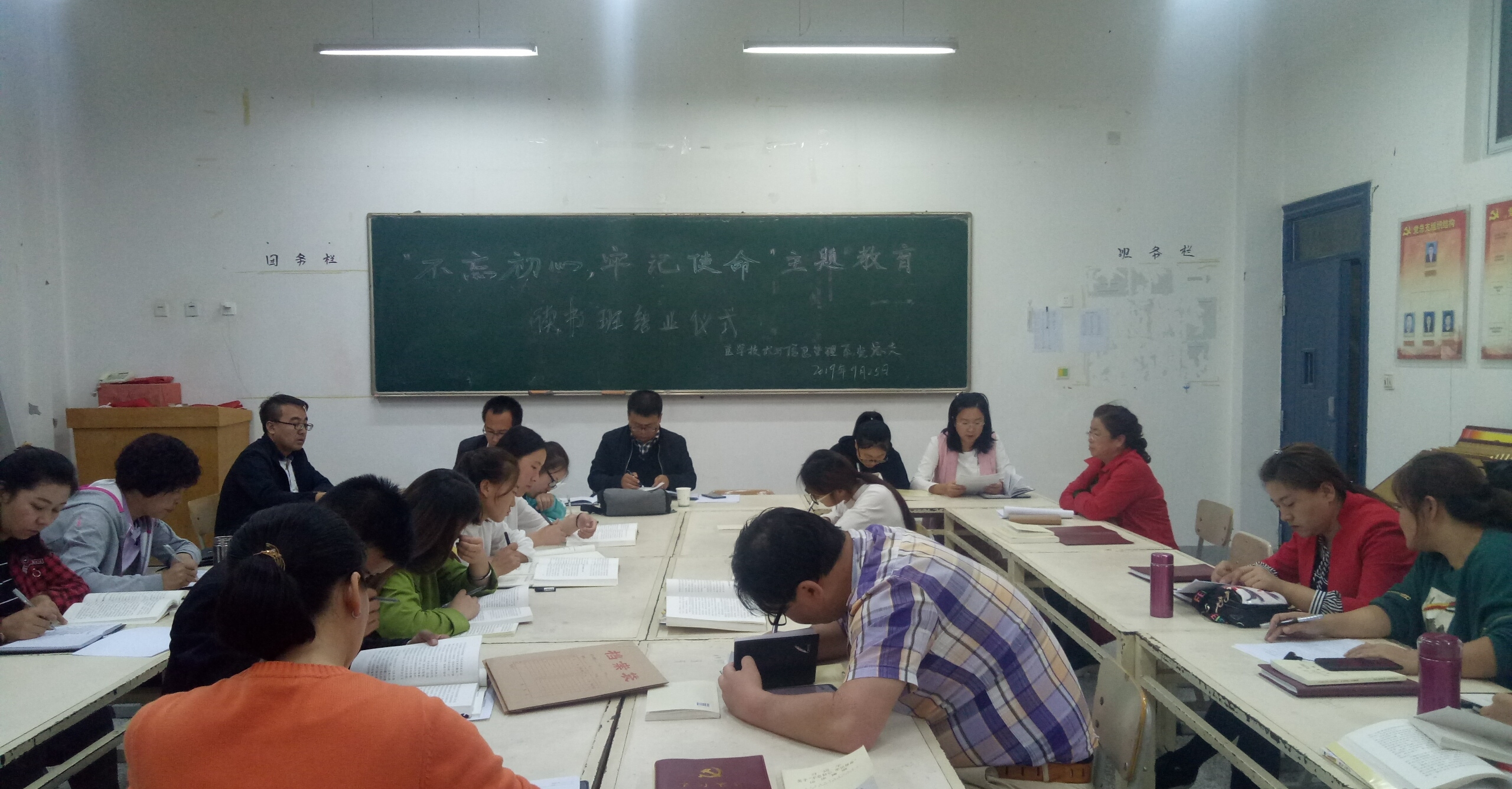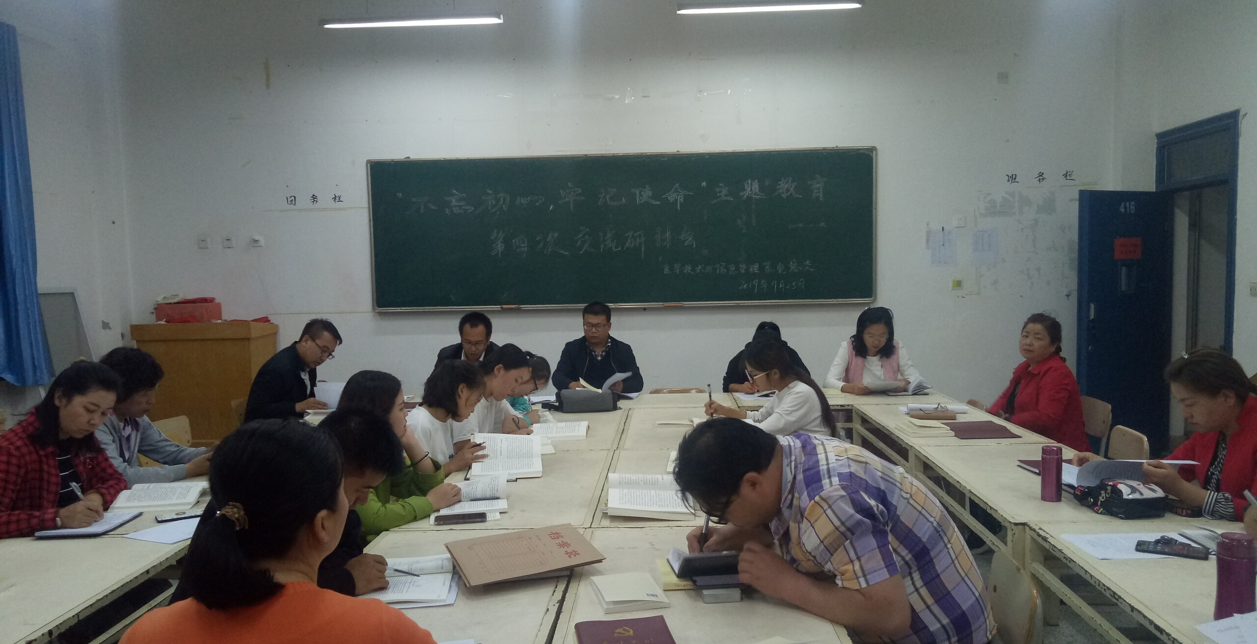9月25日晚,醫(yī)學(xué)技術(shù)學(xué)院黨總支在明遠(yuǎn)樓416會(huì)議室召開(kāi)“不忘初心、牢記使命”主題教育讀書(shū)班第四次交流研討會(huì)暨讀書(shū)班結(jié)業(yè)儀式。系全體黨員、非黨員教師及入黨積極分子參加了會(huì)議。系副主任蔡濟(jì)眾主持會(huì)議并做總結(jié)講話。