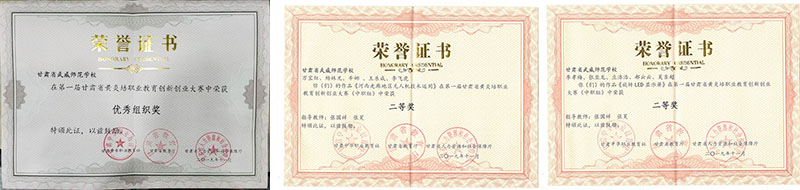 決賽中,甘肅武威師范學(xué)校獲得優(yōu)秀組織獎(jiǎng),我院魏顯文、司玲老師指導(dǎo)的項(xiàng)目《冷涼地區(qū)1-N智能溫室控制系統(tǒng)產(chǎn)業(yè)化》榮獲二等獎(jiǎng);趙忠玉、王得宏老師指導(dǎo)的項(xiàng)目《智能旋轉(zhuǎn)式多工位裝夾氣動(dòng)機(jī)械手的研制及其產(chǎn)業(yè)化》、顏魯薪、楊偉鵬老師指導(dǎo)的《九墩灘環(huán)境保護(hù)與生態(tài)建設(shè)技術(shù)應(yīng)用示范》榮獲高職組三等獎(jiǎng);張國(guó)祥、張昊老師指導(dǎo)的項(xiàng)目《旋轉(zhuǎn)LED顯示屏》和《河西走廊地區(qū)無(wú)人機(jī)技術(shù)運(yùn)用》榮獲中職組二等獎(jiǎng)。