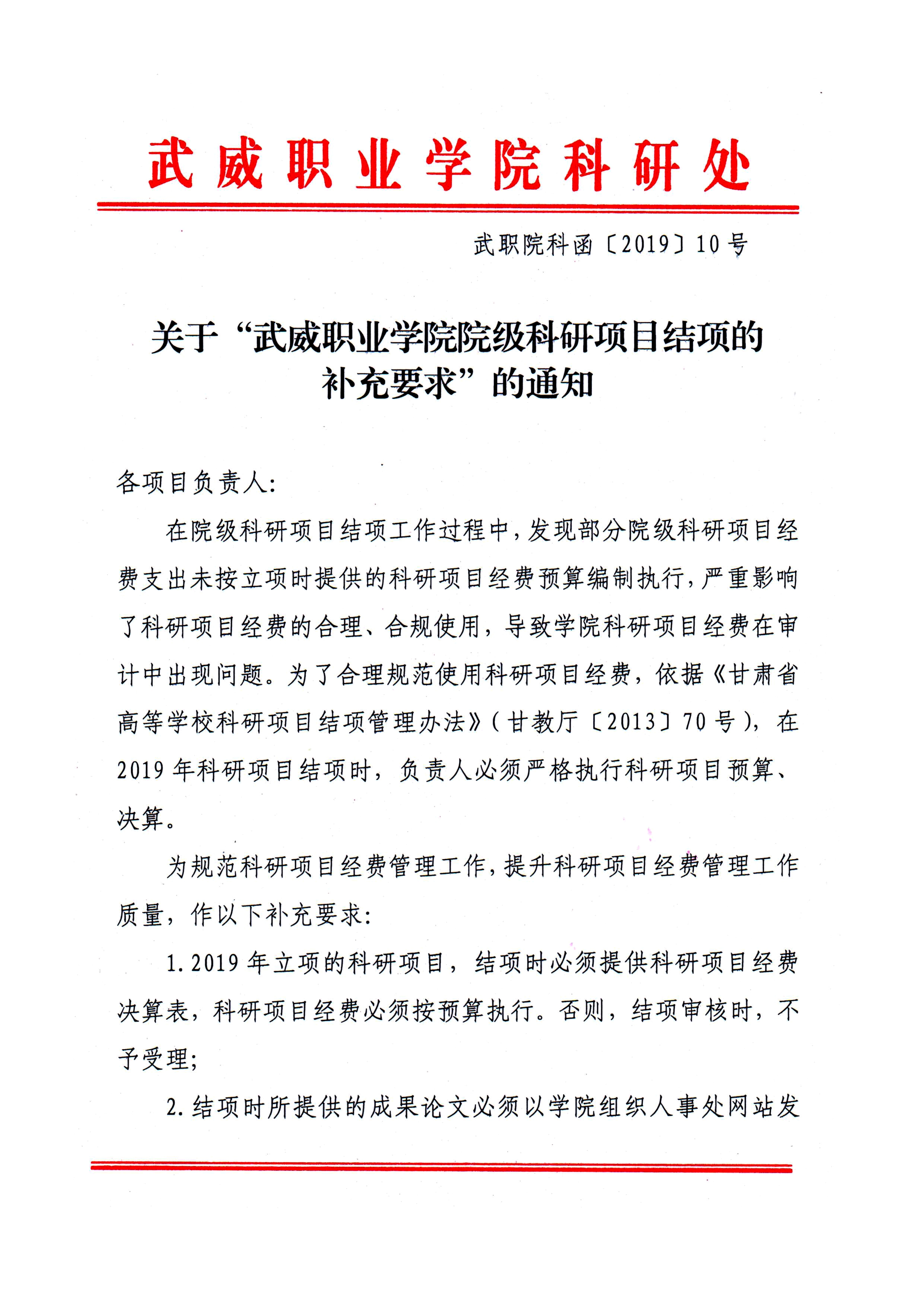 關(guān)于“武威職業(yè)學(xué)院院級(jí)科研項(xiàng)目結(jié)項(xiàng)的補(bǔ)充要求”的通知