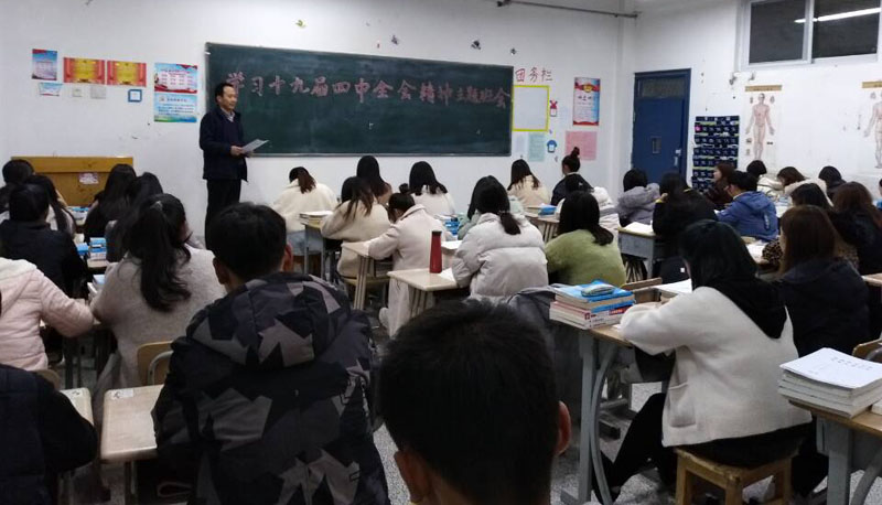 11月底,藥學(xué)系組織班主任進(jìn)教室,以主題班會形式宣講十九屆四中全會精神,使全會精神全員覆蓋。