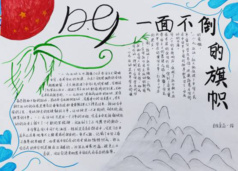 今年是“12.9”愛國運動84周年。現(xiàn)代農業(yè)技術系的十二個班級通過辦手抄報的形式開展紀念“12·9”運動,旨在加強學生的愛國主義教育,弘揚愛國主義精神,教育學生銘記歷史,勿忘國恥,增強民族自豪感。