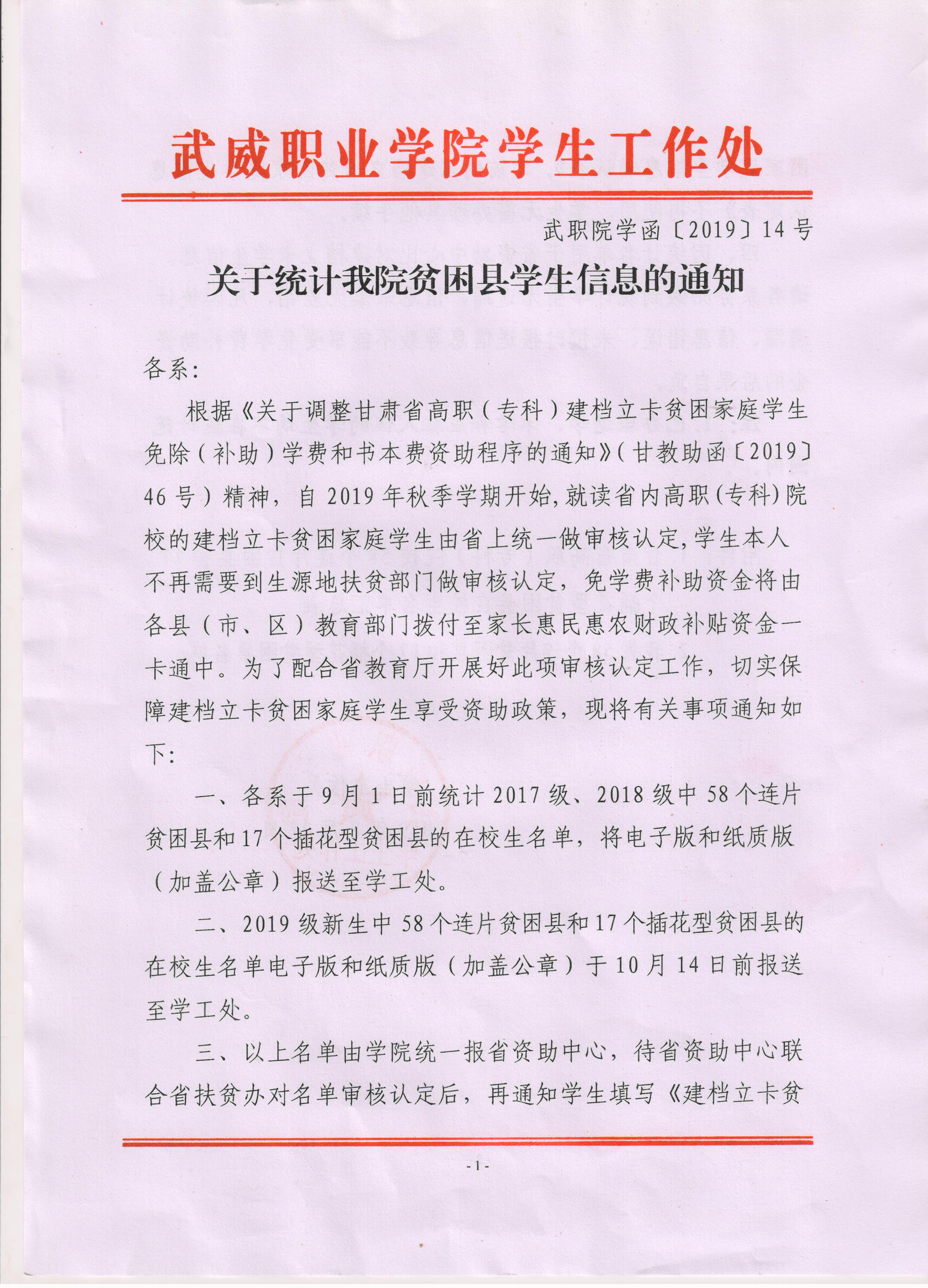 關(guān)于統(tǒng)計我院貧困縣學生信息的通知
