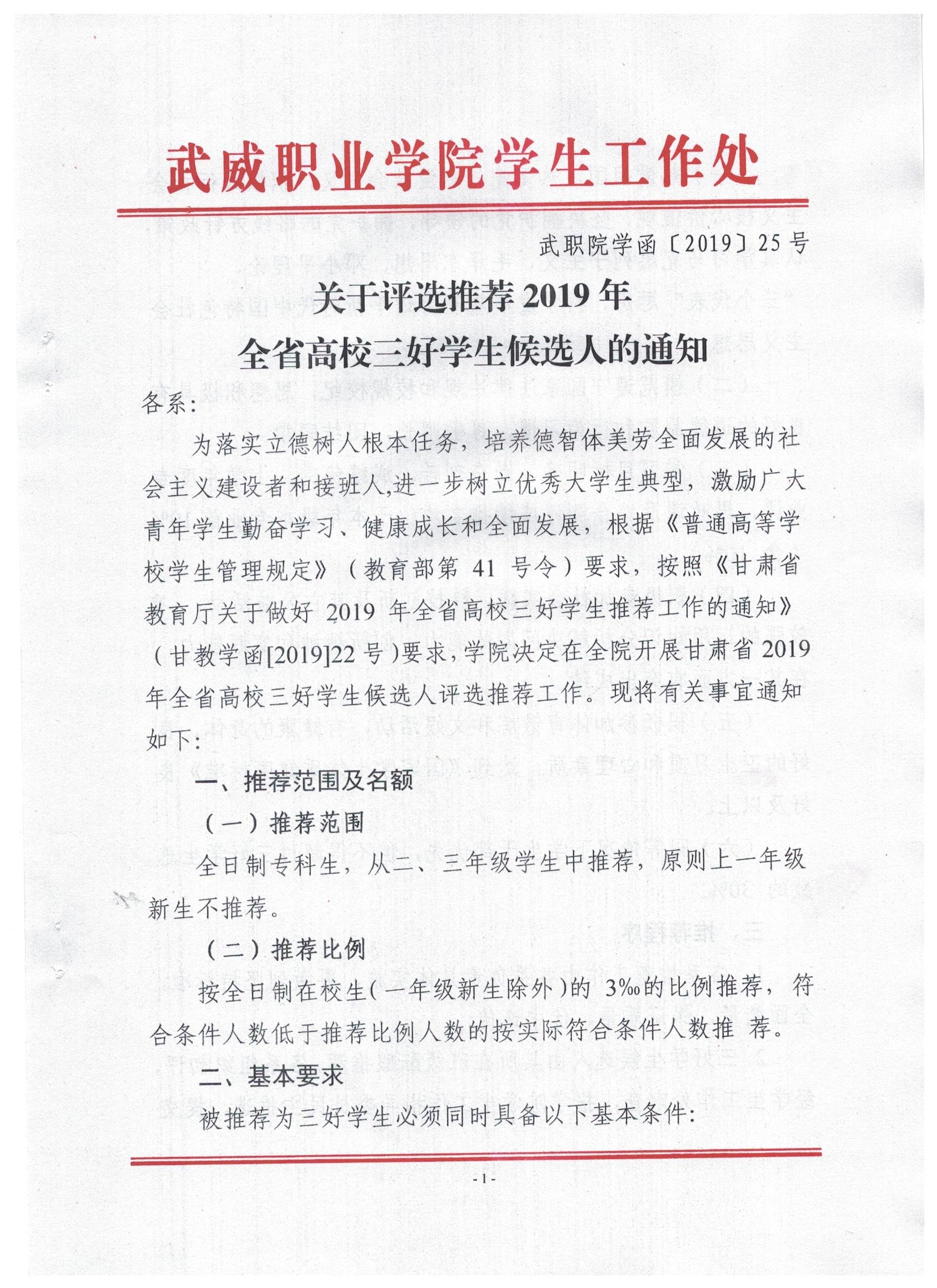 關于評選推薦2019年全省高校三好學生候選人的通知
