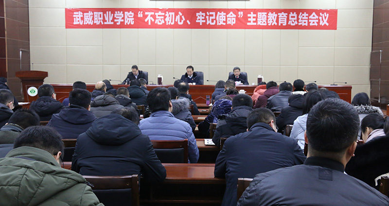 根據(jù)省委“不忘初心、牢記使命”主題教育領(lǐng)導(dǎo)小組統(tǒng)一部署和安排,1月14日下午,武威職業(yè)學(xué)院“不忘初心、牢記使命”主題教育總結(jié)會議在行樹樓報(bào)告廳舉行。會議深入學(xué)習(xí)了習(xí)近平總書記在“不忘初心、牢記使命”主題教育總結(jié)大會上的重要講話精神,回顧了學(xué)院主題教育的推進(jìn)過程,總結(jié)成效和經(jīng)驗(yàn),動(dòng)員廣大黨員干部把初心和使命轉(zhuǎn)化為擔(dān)當(dāng)作為、干事創(chuàng)業(yè)的實(shí)際行動(dòng),推動(dòng)學(xué)院各項(xiàng)工作取得新業(yè)績。