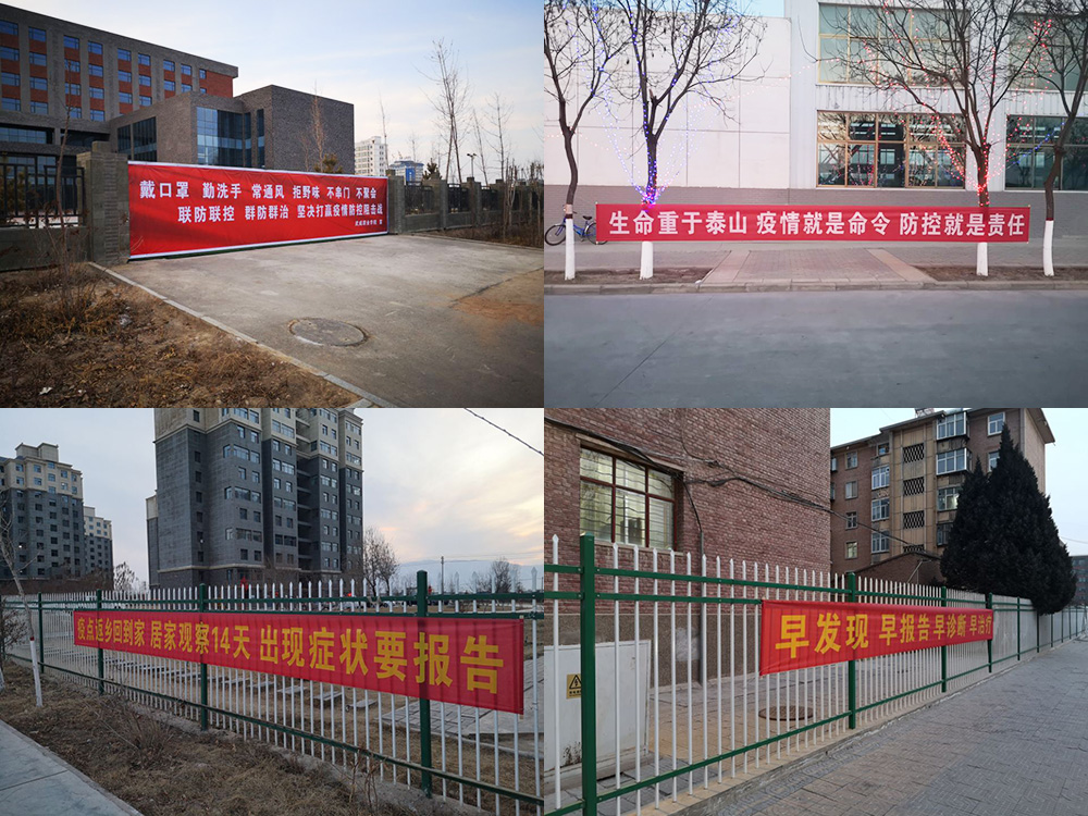 學(xué)院面向師生和社會(huì)人員,加強(qiáng)疫情防控內(nèi)外宣傳。在校園圍墻醒目位置設(shè)置內(nèi)容為:“戴口罩、勤洗手、常通風(fēng)、拒野味、不串門、不聚會(huì)”,“聯(lián)防聯(lián)控、群防群治、堅(jiān)決打贏疫情防控阻擊戰(zhàn)”等宣傳標(biāo)語(yǔ);在校園內(nèi)、家屬區(qū)等地顯著位置設(shè)置:“生命重于泰山、疫情就是命令、防控就是責(zé)任”,“重科學(xué)、聽(tīng)官宣、不信謠、不傳謠”,“疫點(diǎn)返鄉(xiāng)回到家、居家觀察14天、出現(xiàn)癥狀要報(bào)告”,“早發(fā)現(xiàn)、早報(bào)告、早診斷、早治療”等宣傳標(biāo)語(yǔ)、橫幅。通過(guò)線上線下、校內(nèi)校外全方位教育、宣傳、號(hào)召、引導(dǎo),營(yíng)造了師生和社會(huì)人員高度重視、科學(xué)嚴(yán)謹(jǐn)、從我做起、同舟共濟(jì)嚴(yán)格防控疫情的濃厚氛圍和戰(zhàn)勝疫情的堅(jiān)定信心,為早日打贏疫情防控戰(zhàn)凝聚了共識(shí)、匯聚了強(qiáng)大的精神力量。