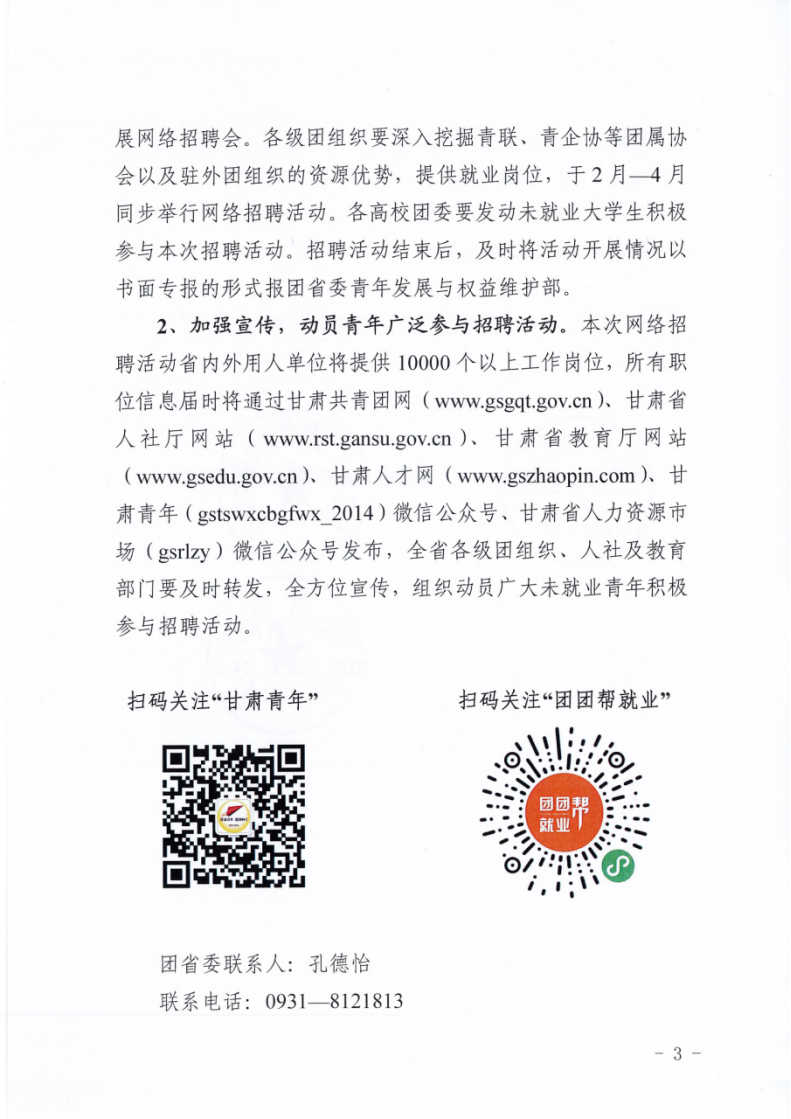 關(guān)于組織開展甘肅共青團(tuán)助力脫貧攻堅第三屆青春招聘會(網(wǎng)絡(luò))活動的通知