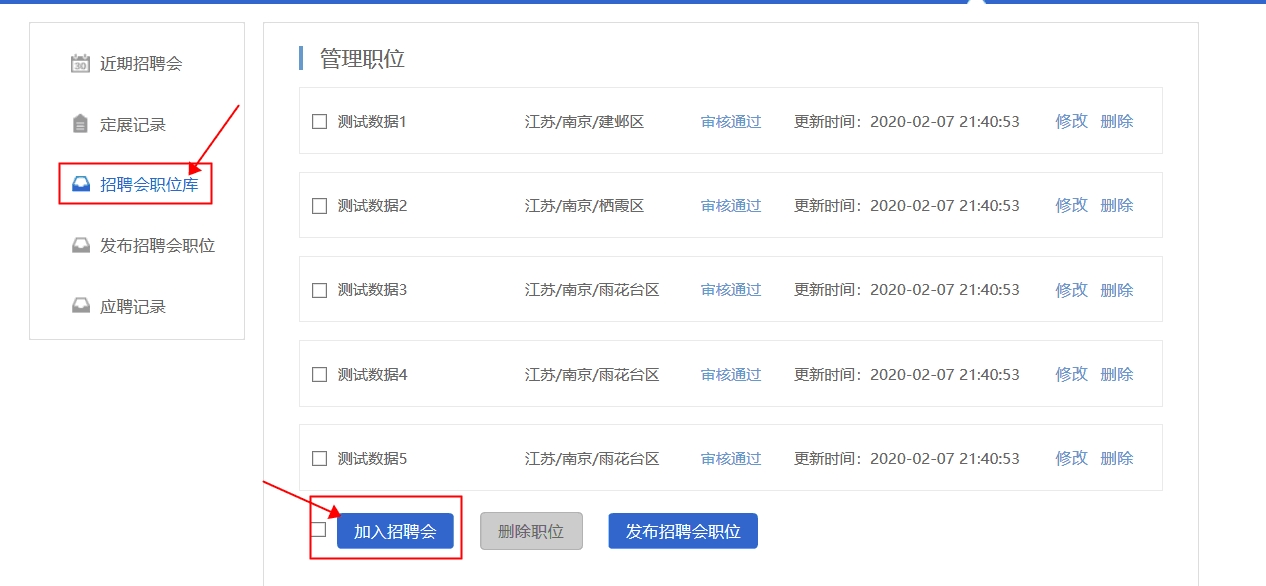 2.企業(yè)通過后臺中心“網(wǎng)絡(luò)招聘會”欄目——點(diǎn)擊發(fā)布招聘會職位(等待審核)——審核通過后,將“招聘會職位庫”中的職位加入到“武威職業(yè)學(xué)院2020屆醫(yī)藥衛(wèi)生類畢業(yè)生網(wǎng)絡(luò)視頻雙選會”,職位將在網(wǎng)絡(luò)招聘大廳中進(jìn)行展示。
