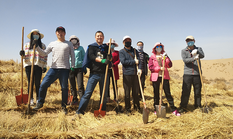 為認(rèn)真踐行綠水青山就是金山銀山理念,大力弘揚(yáng)八步沙“六老漢”當(dāng)代愚公精神,2020年4月8日,教學(xué)管理第一黨支部聯(lián)合現(xiàn)代農(nóng)業(yè)技術(shù)系、中科院武威所赴長(zhǎng)城鄉(xiāng)開(kāi)展“壓沙造林”主題黨日活動(dòng),全體黨員參加活動(dòng),以實(shí)際行動(dòng)領(lǐng)悟和彰顯黨員教師的初心使命和責(zé)任擔(dān)當(dāng)。
