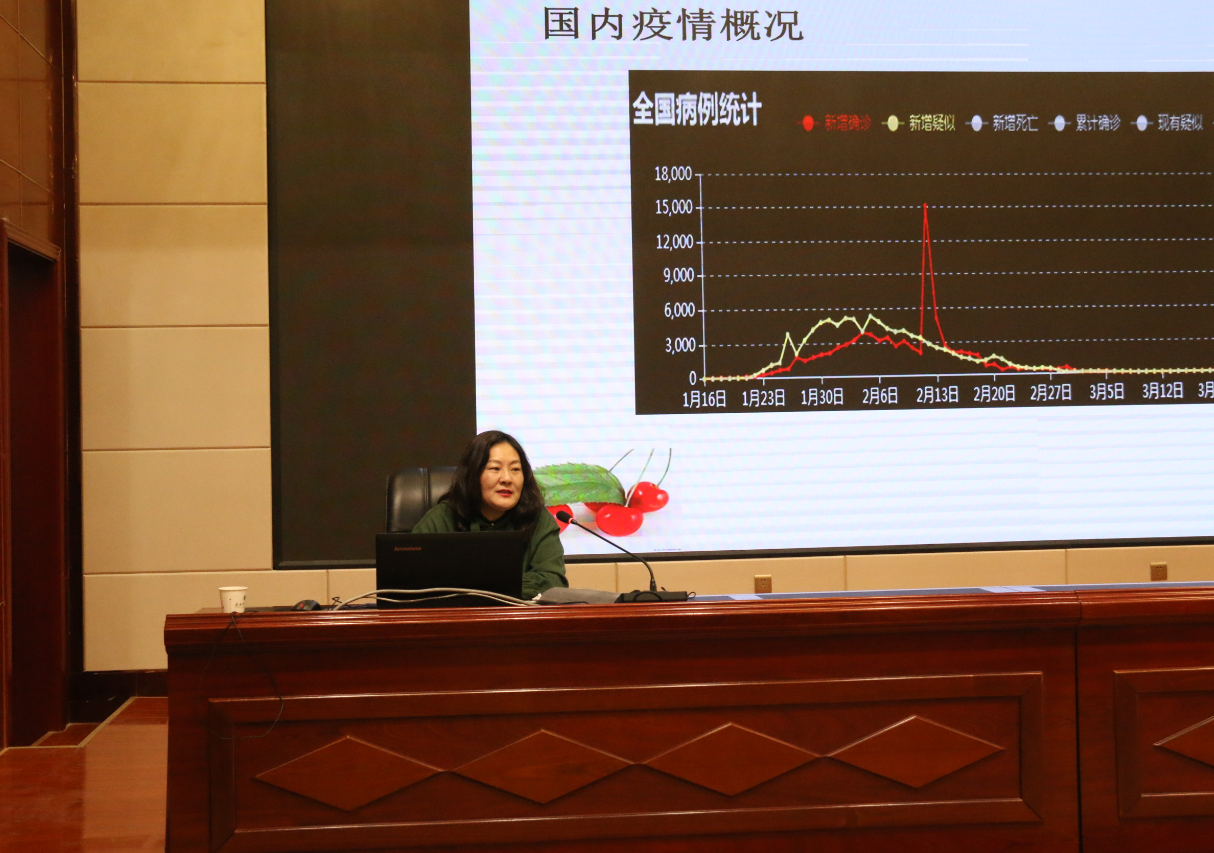 馬艷主任以《新冠肺炎疫情防控》為題,從國內(nèi)外疫情分析、對新冠肺炎的認(rèn)識、大專院校新冠肺炎疫情防控要求措施以及開學(xué)后應(yīng)該注意哪些問題等幾個(gè)方面做了深入講解。