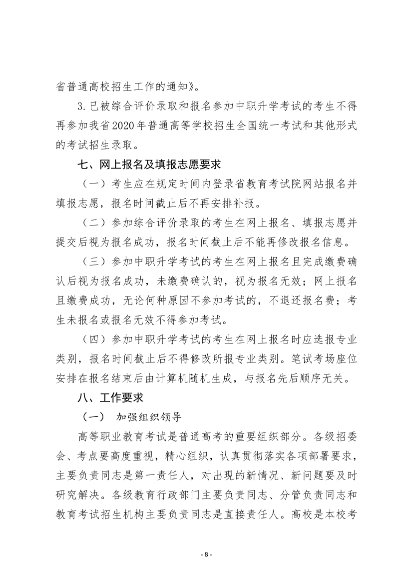 關(guān)于印發(fā)《2020年全省高等職業(yè)教育考試招生工作…