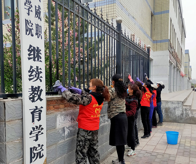 為扎實(shí)開展“三整治”“三提升”行動(dòng),有效改善城區(qū)環(huán)境,進(jìn)一步提升校園品質(zhì),建設(shè)文明校園,助力全國(guó)文明城市創(chuàng)建,為師生返校創(chuàng)造干凈、整潔、衛(wèi)生的學(xué)習(xí)工作和生活環(huán)境。按照涼州區(qū)城市管理委員會(huì)通知,結(jié)合學(xué)院實(shí)際,4月15日起,學(xué)院后勤處經(jīng)過(guò)排查,組織教職工及保潔工作人員全面開展校園“清潔亮妝”行動(dòng)。