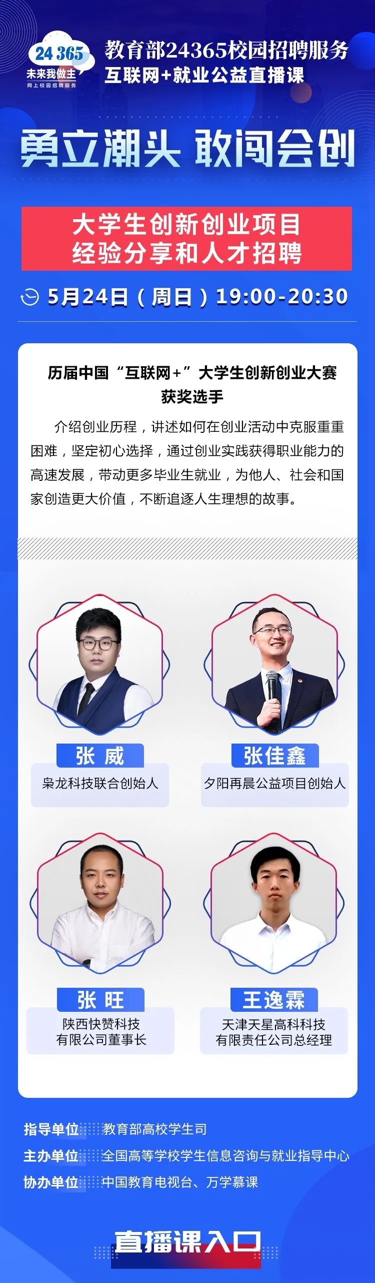 教育部24365就業(yè)公益課程:勇立潮頭 敢闖會創(chuàng)——大學(xué)生創(chuàng)新創(chuàng)業(yè)項目經(jīng)驗分享和人才招聘